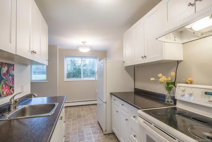 2 bed Nanaimo condo right across from beautiful Bowen Park with walking trails, rec center, tennis courts, frisbee golf, outdoor pools & a sports field. Only half a block from my favorite walking trail around Buttertubs Marsh. This home has been nicely renovated & has easy to clean laminate & lino throughout. Central & close to shopping, downtown, all levels of schools including Vancouver Island University. On the main bus route & a short walk to downtown. No rental restrictions & the strata fee INCLUDES HEAT & HOT WATER. Super turnkey investment or affordable home. One small dog or one cat is welcome. Month to month tenancy to a nice tenant that would love to stay. Photos are from before tenancy. All measurements are approximate & should be verified if important.