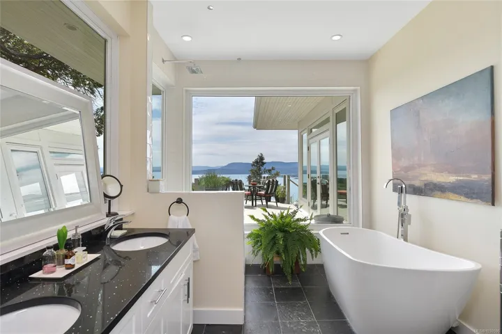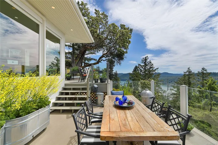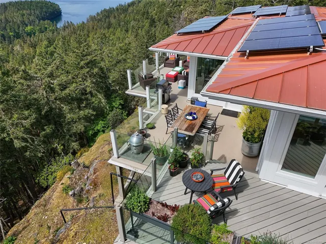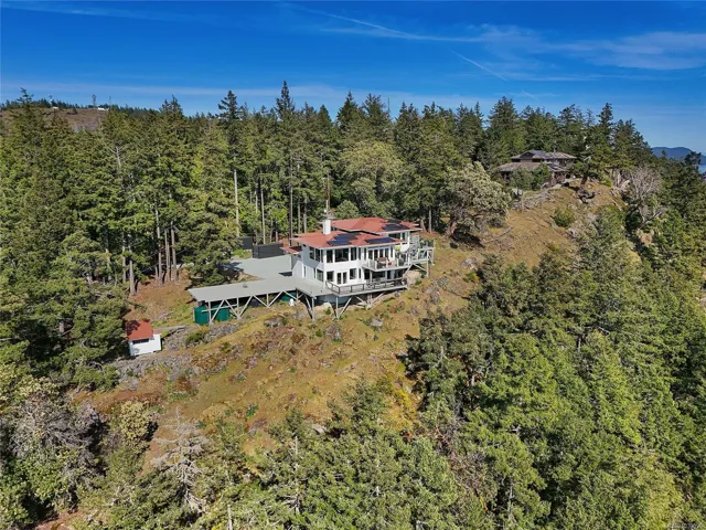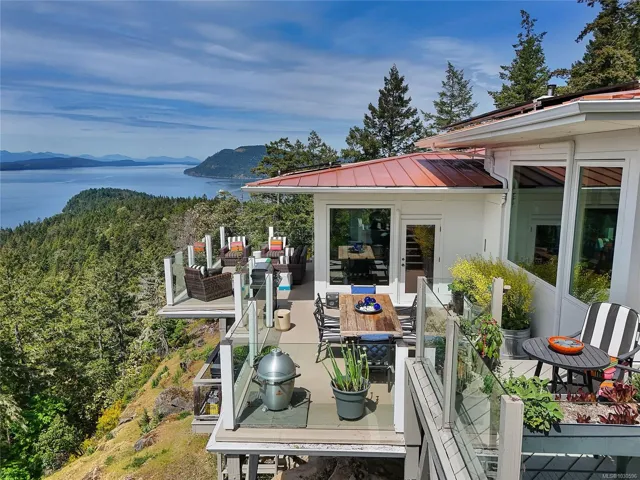 Perched above the coastline with sweeping southern ocean views, this 4,200+ sq. ft. custom home is set on 10 acres of dramatic West Coast landscape between Vancouver and Victoria. Thoughtfully designed to balance comfort and craftsmanship, the home features a newly completed Wolf kitchen, three ensuite bedrooms, a dedicated executive office, and a solar-forward approach to modern living. Expansive decks extend the living space outdoors, offering a front-row seat to passing wildlife, open sky, and ever-changing ocean views. The property’s varied terrain provides privacy and presence, while a secondary access point offers flexibility for a future guest cottage or studio. Rarely does a property of this scale combine architectural intention, natural landscape, and proximity to the city in such a compelling way.A distinctive Gulf Islands offering—just an hour’s ferry ride from the mainland.