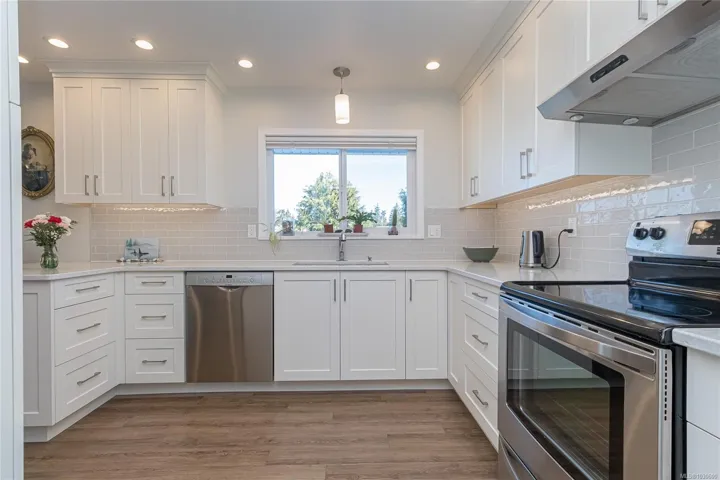 Open house Sat & Sun 2-4pm. Welcome to 544 Riel Pl., a beautifully maintained 5-bedroom 2-bathroom home tucked away on a quiet cul-de-sac in a desirable Saanich neighborhood. This inviting property offers a bright, functional layout with generous living spaces, perfect for both everyday living and entertaining. The updated custom kitchen flows nicely into the dining and living areas, creating a warm, connected atmosphere. A sundeck off the kitchen/dining area is great for entertaining or enjoying the sun. Downstairs you will find 2 good sized bedrooms, a rec room or exercise area, a sewing or office area, 3 piece bathroom, laundry and garage. Large windows bring in plenty of natural light, while the private yard provides a peaceful outdoor retreat with irrigated flower beds and boxes. Well-cared-for and move-in ready, this home is close to parks, trails, schools, shopping, and all amenities. A fantastic opportunity to enjoy comfort, convenience, and community in the heart of Saanich.