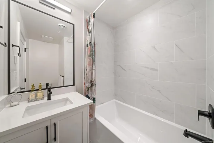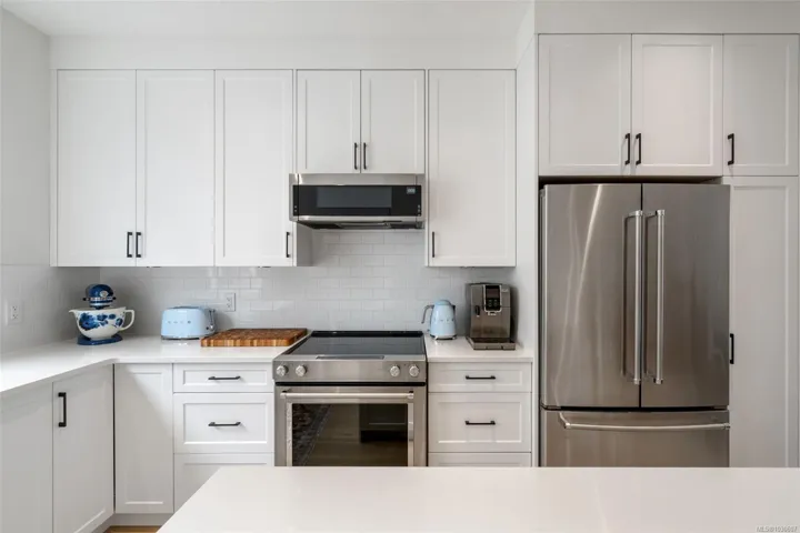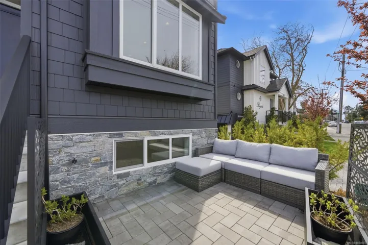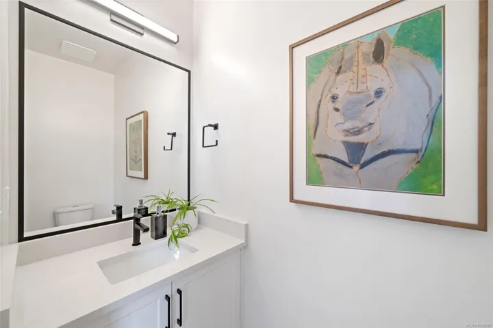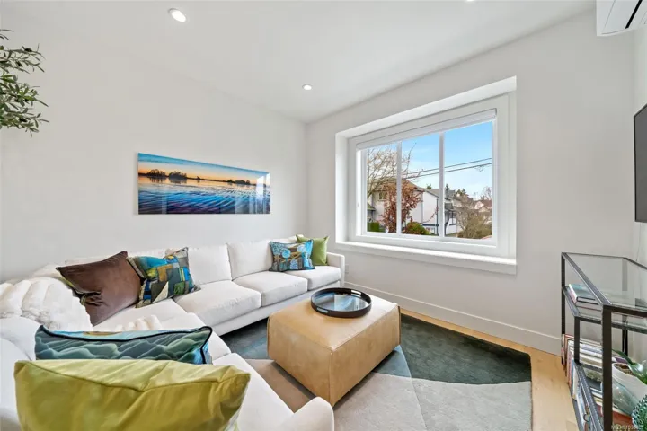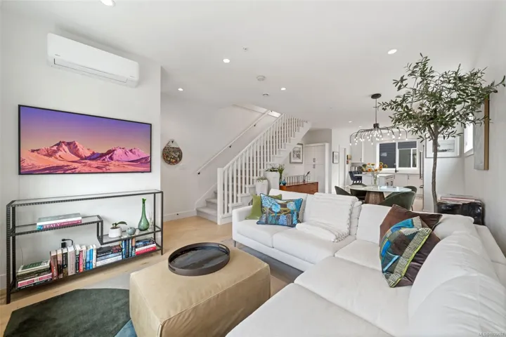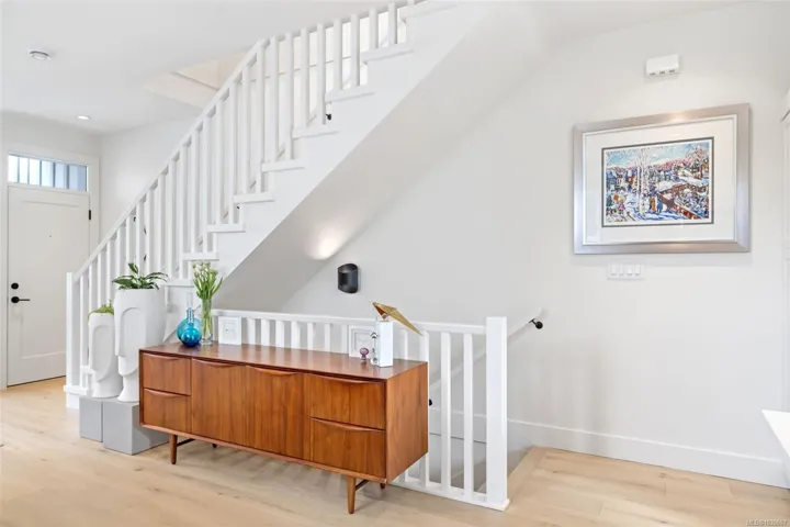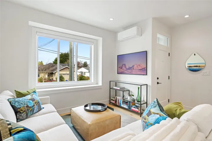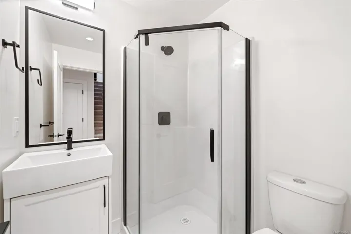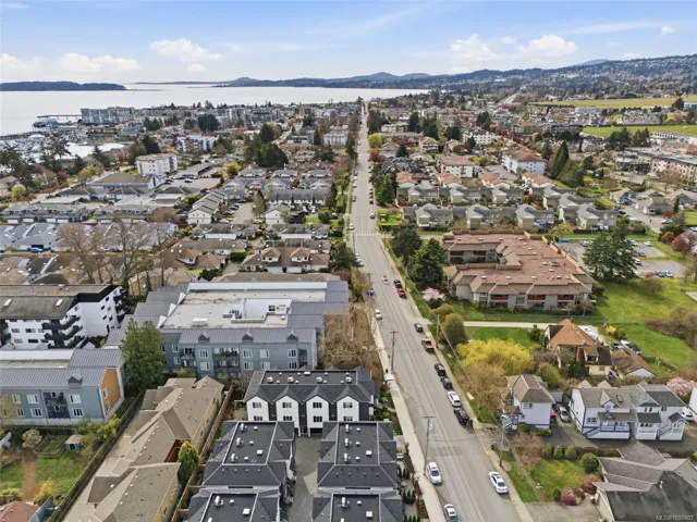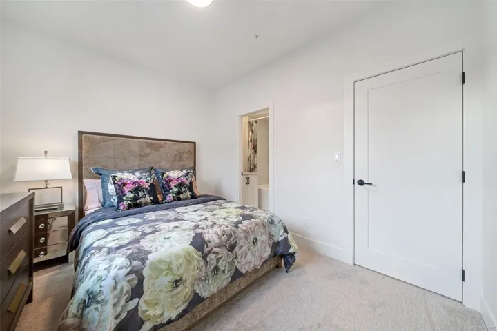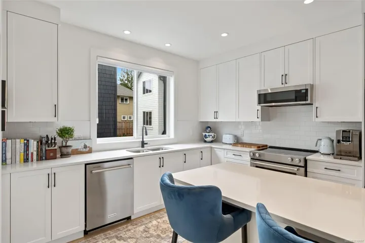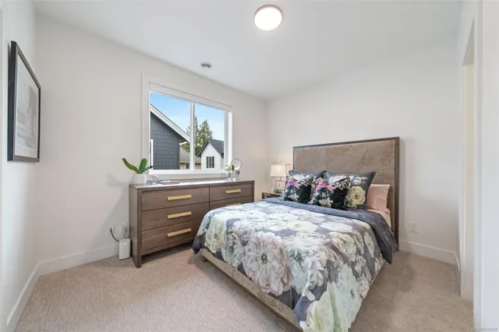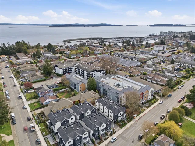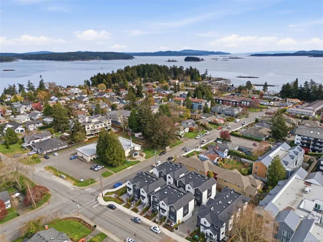 NO GST! Built in 2025, this beautifully appointed corner-unit townhome offers 3 bedrooms, 4 bathrooms, and bright, airy living with 9-foot ceilings on both main and upper levels. The custom white kitchen features ceiling-height cabinetry, quartz countertops, a generous island, and premium stainless steel appliances, hardwood flooring, over $9,000 in upgraded designer lighting, and an $8,500 electric blinds package. Upstairs, enjoy the convenience of an in-suite laundry area alongside two well-appointed bedrooms, which includes the spacious primary retreat complete with a private ensuite. Both bedrooms offer ample closet space, while all tiled bathrooms feature in-floor heating for an added level of everyday comfort. Additional highlights include a heat pump, oversized single garage, window screens, and 2, 5, and 10-year new home warranty. Ideally located just steps to Roberts Bay, beaches, scenic trails, and a short walk to Sidney’s vibrant shops, cafés, and restaurants nearby.
