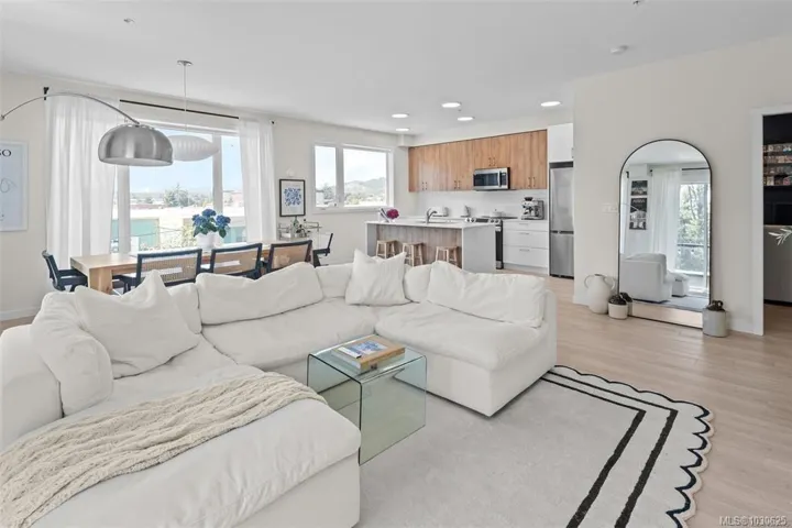 Experience exceptional space and natural light in this generous 916 sq ft 1 bed + den CORNER UNIT. Thoughtfully designed with modern, tasteful finishes, it features oversized south-facing windows and an open living/dining layout with room for full furniture sets. The stylish, functional kitchen offers two-tone cabinets, quartz counters, s/s appliances, and a large island—great for daily use or entertaining. Enjoy 9-ft ceilings, A/C (heat pump), in-suite laundry, and a spacious balcony. Located in a prime Westshore spot steps to the lake, shopping, gyms, and top amenities. The secure, pet- and rental-friendly building includes a fitness centre, BBQ terrace, gated parking, a storage locker, and a bike room. As a newer build with no GST, it’s a smart, standout investment. Book your private showing today!