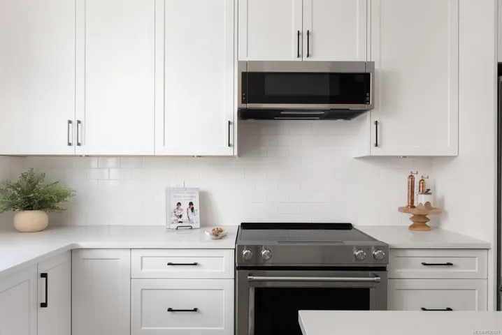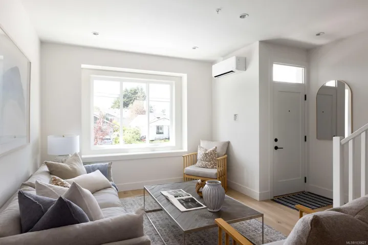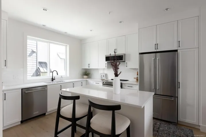**Open House Saturday 1-3pm** Proud to present The Bayside Towns on Fifth – a curated collection of 16 townhomes in Sidney’s most desirable neighbourhoods, ROBERT’S BAY. Offering a modern farmhouse aesthetic featuring 3 beds, 3.5 baths, 9′ ceilings on main and upper level and oversized single car garage. Light wide-plank hardwood throughout main level & large picture windows will keep the home light & bright. Custom white kitchen cabinets with quartz counters, generous island & stainless steel appliances. Laundry room with sliding barn door on upper level. Efficient heat pump for year round heating and cooling. In-floor heat in all tiled bathrooms, both upper level bedrooms with their own ensuite. Interlocking brick, sunny patio with irrigation. Over 60% now sold – close to beaches, trails and easy walk to Beacon Ave, this is a 12/10 location! Eligible for property transfer tax exemption and first time homebuyers could also qualify for full GST rebate!