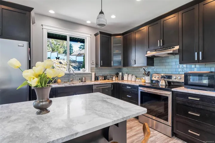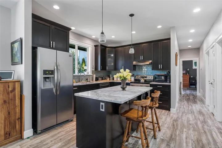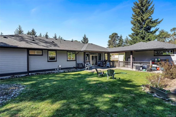 Welcome to 2618 Natalie Rd. Tucked away on a peaceful 0.39-acre lot in the heart of the Warmland, this beautifully maintained 3-bed, 2-bath Shawnigan rancher offers effortless main-level living. A covered walkway from the over-height double garage leads into a spacious foyer and open-concept living, dining, and kitchen area. Vaulted ceilings and a cozy gas fireplace highlight the living room, with access to a sunny south-facing covered deck. The gourmet kitchen and dining area open to a private backyard and patio—ideal for outdoor living. Forced air heating and cooling keep the home comfortable year-round. The generous primary suite occupies the east wing, featuring a walk-in closet, a 5-piece ensuite, and its own deck access. With ample crawl space storage and just a short stroll to Shawnigan Village, amenities, and lake access, this is a lifestyle property you won’t want to miss.