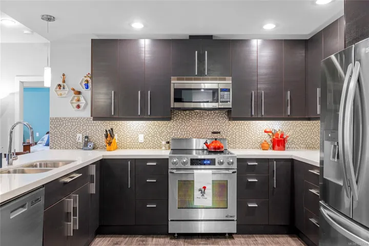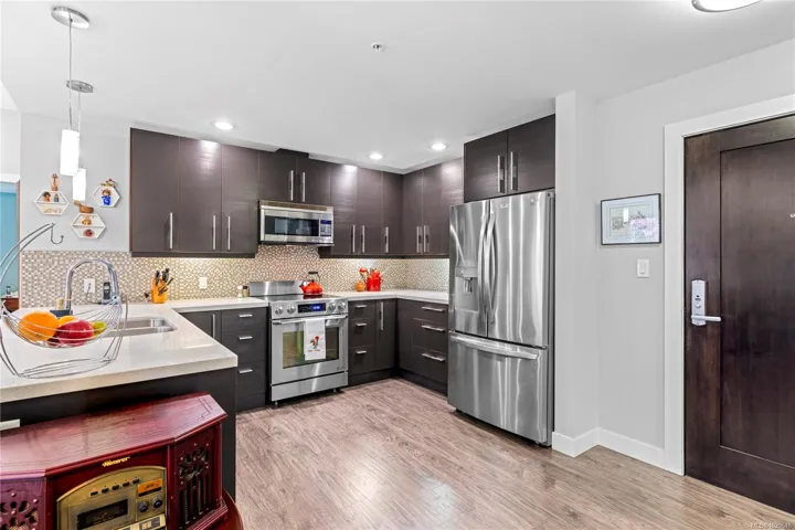 Discover the pinnacle of Vancouver Island living in this stunning 1,503 sq. ft. garden view condo. Located in one of Qualicum’s most prestigious areas, this residence offers a perfect blend of modern sophistication and serene coastal charm. The open concept design features a gourmet kitchen with quartz countertops and stainless appliances, flowing into a spacious living room anchored by a cozy electric fireplace. Expansive floor to ceiling windows bathe the home in light, framing beautiful garden views. The primary suite is a true sanctuary, featuring a walk-in closet and a spa-inspired ensuite with a deep tub and separate shower. Step onto your double sized entertainment patio, accessible from the living area and both bedrooms, and enjoy the fresh ocean air. With secure entry, underground parking, storage, and pet friendly policies, this is turn key luxury. Live the dream steps from the beach!