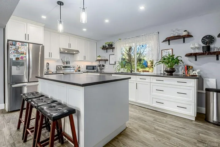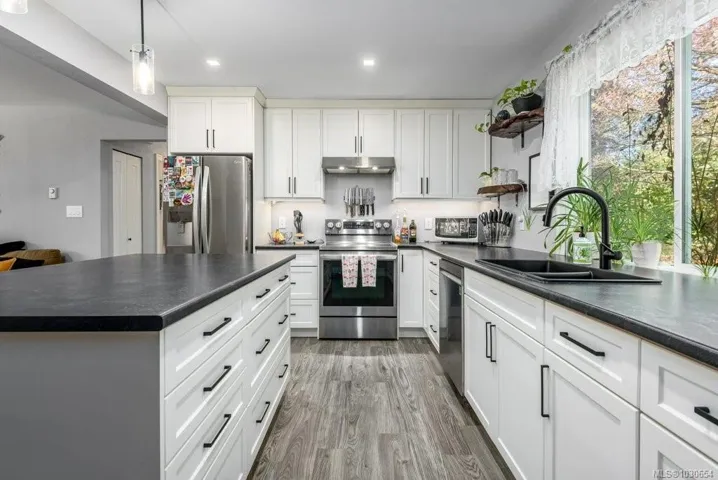 This thoughtfully updated home offers exceptional space, flexibility, and peace of mind with extensive upgrades throughout. The main level features a bright open-concept living area with 3 bedrooms and 1.5 bathrooms, ideal for comfortable everyday living. Lower level includes a 1-bedroom, 1-bath in-law suite with an oversized bedroom and wheelchair-accessible design. Major renovations in 2021 include a heat pump, upgraded electrical panel sized to support matching appliances in both living areas, updated trim, doors, baseboards, lighting, flooring, hardware, and heaters. Additional improvements include a walk-in closet, enclosed carport with barn doors, perimeter drain upgrades, a new hydro line and pole, and a septic pump and clean-out completed in 2026. Located within the desirable Huband Park Elementary School catchment, this property is close to schools, parks, and easy access to the stunning Seal Bay trail system,perfect for enjoying nature year-round.