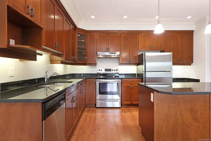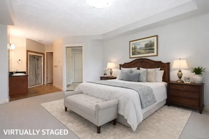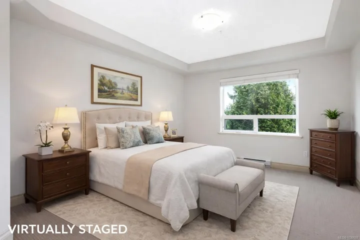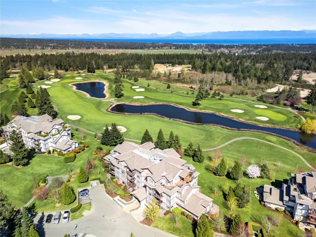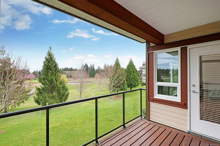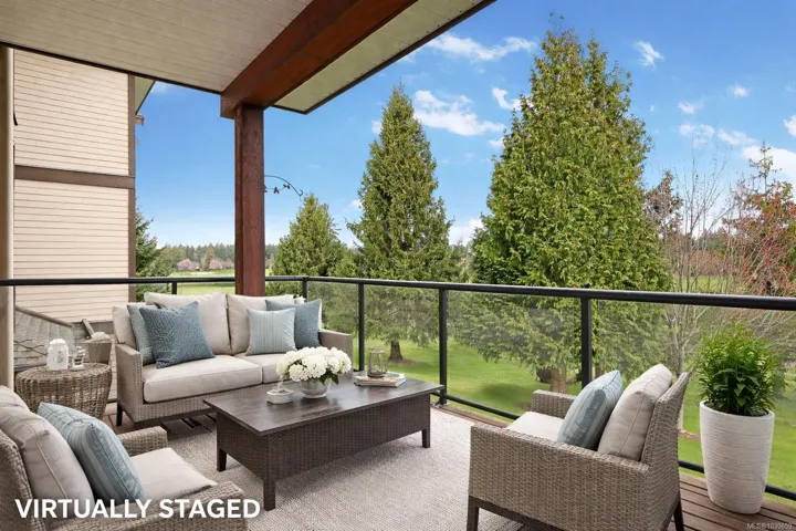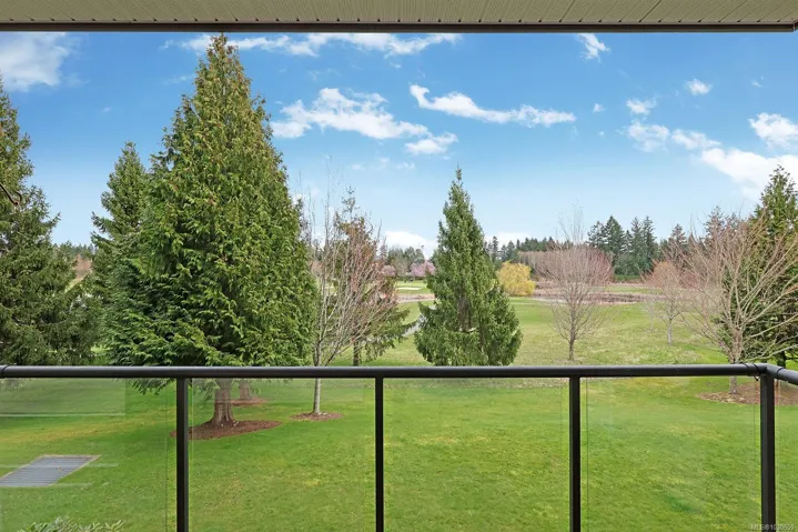 Welcome to sought-after Corinthia Estates! This spacious 1,421 sq ft second-floor condo offers 2 bedrooms, 2 bathrooms, and a den, with stunning golf course views spanning the 3rd, 4th, and 5th fairways. The well-appointed kitchen features rich wood cabinetry, granite countertops, stainless appliances, and a central island with seating. The bright great room offers a cozy gas fireplace and opens to a covered deck—perfect for morning coffee or evening relaxation. The generous primary bedroom includes a large ensuite with double sinks. Additional highlights include elevator access, secure underground parking, 2 storage lockers, and beautifully maintained grounds with a tranquil water feature. Pet-friendly (1 dog or 1 cat) and non-smoking.