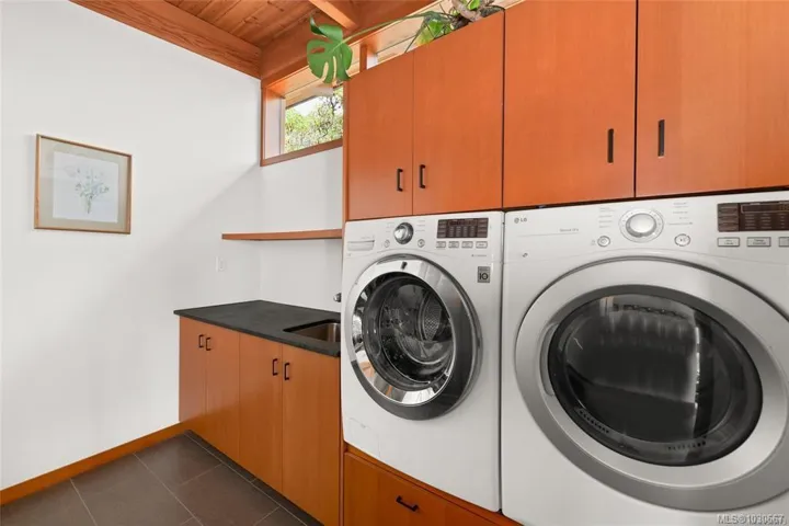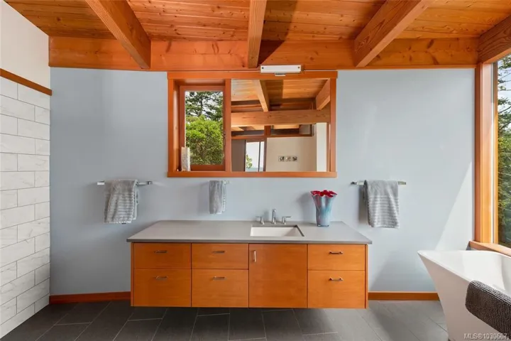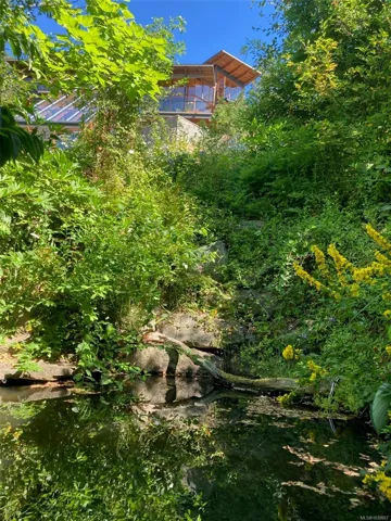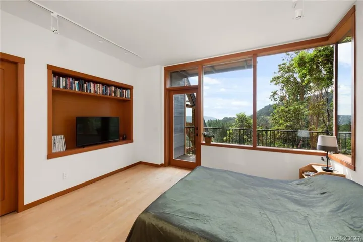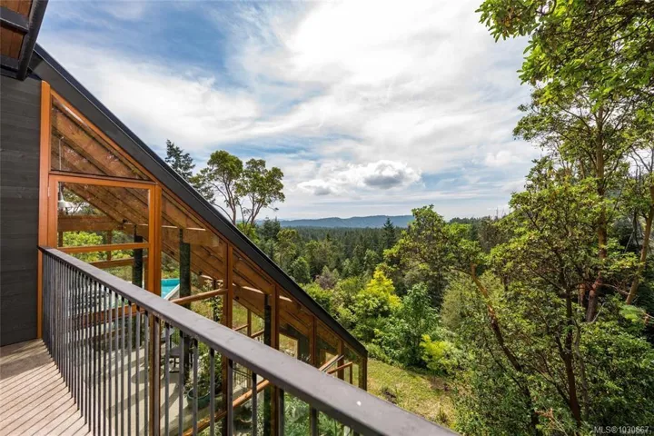An extraordinary example of modern west coast architecture coupled with exquisite craftsmanship, this sun-loving 4200 sq.ft. custom built residence was designed by Phillip Van Horn & sits atop a rocky outcrop that overlooks a lush, mostly-wooded, private, 15 acres. Walls of custom windows framing forest & ocean views, this amazing mid-island home features a remarkable greenhouse that cascades from the lower level to the gardens. Visually stunning interiors delight the senses: hand crafted floating staircase uniting the 3 levels. Massive fir & steel beams, multiple decks, gleaming hardwood floors, & a gorgeous chef’s kitchen – all basking in natural light from all directions. Spacious upper level primary bedroom suite has a private balcony, large walk through closet & spa-like ensuite. The lower level feature a pool terrace with hot tub, a sauna, fabulous gallery space, perfect as media or family room. Separate auxiliary building provides ideal overflow for guest or home based pursuits.