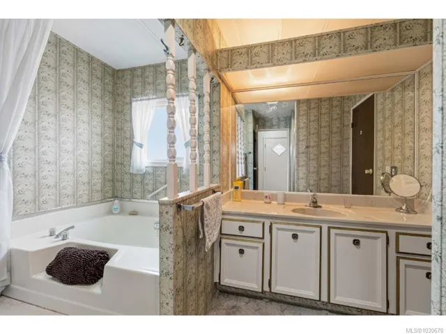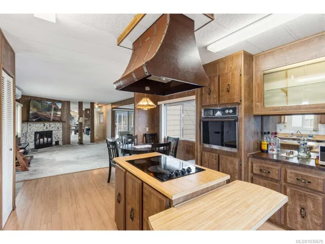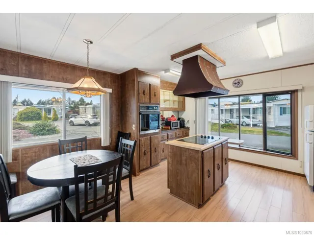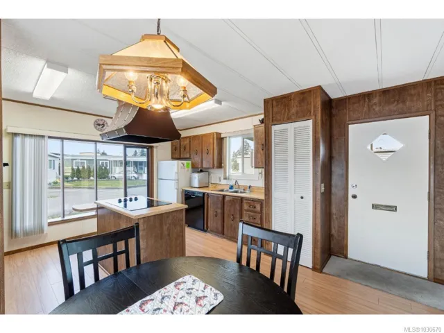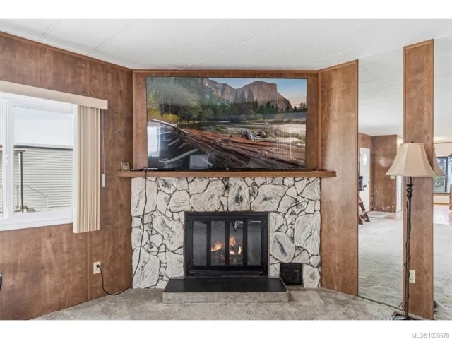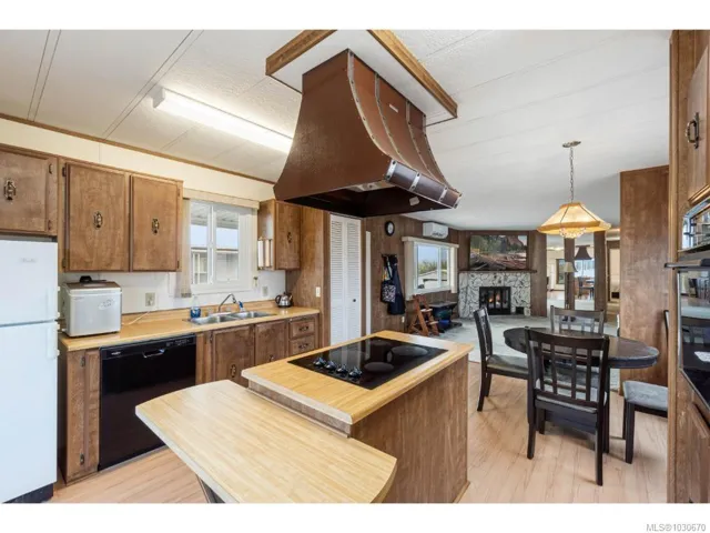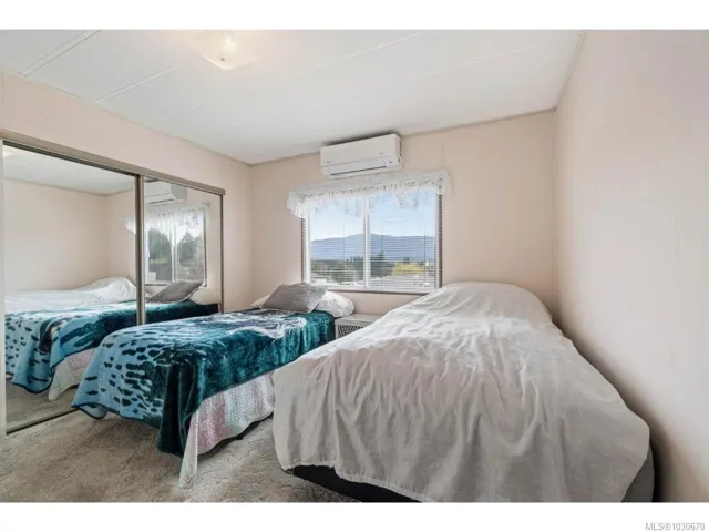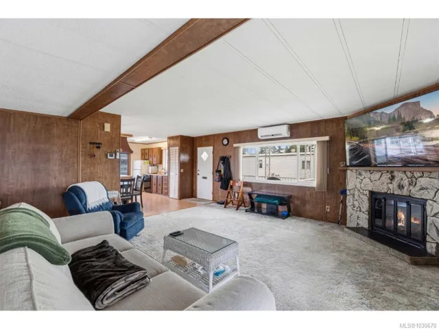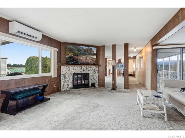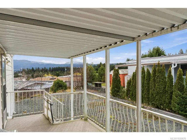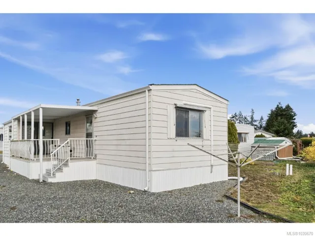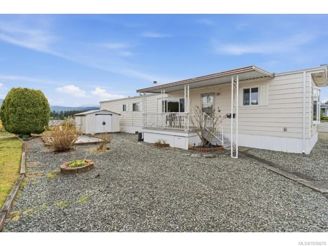 Welcome to Sharman Park in North Nanaimo. A great park in a great location, close to all amenities. Very well maintained mobile home. Updates include a new roof (October 2025) New dishwasher, new heat pump (2024) some new plumbing and electrical in the bathroom, Chimney checked & cleaned, ready to warm your home. This 2 bed/1 bath home has an open concept living area with many updated windows. Sliding doors open onto an oversized covered deck at the back, perfect for relaxing or entertaining all year round with beautiful views of Mount Benson. There is also a deck off the main entry for more outdoor space. The bathroom has a door to the primary bedroom for your convenience & one in the hallway. Separate shower and a deep soaker tub. Easy to maintain yard, storage shed & ample parking