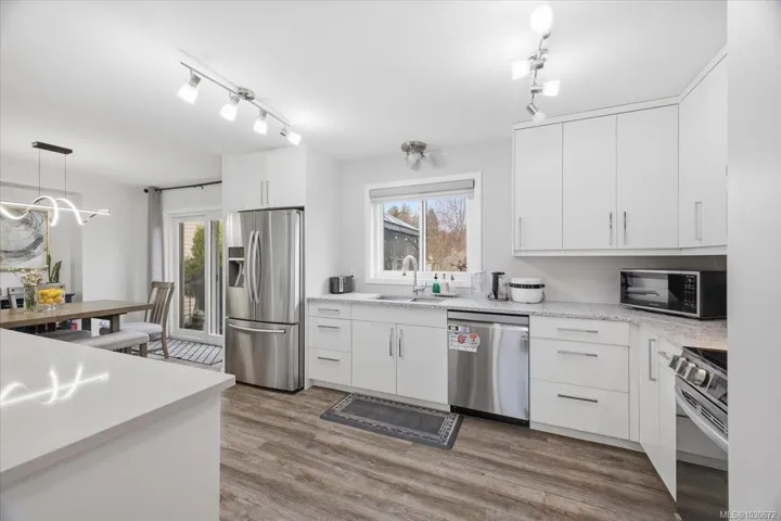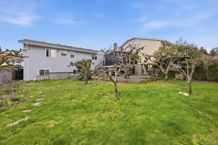 Bright, updated, and well-located in Departure Bay. This 4 bed, 3 bath home was fully renovated in 2018, offering a clean, modern interior with an open concept kitchen, dining, and living area that feels both spacious and functional. The kitchen features updated cabinetry, stone countertops, stainless steel appliances, and modern lighting throughout. Downstairs includes a large family room, fourth bedroom, laundry, and ample storage space—ideal for growing families or added flexibility. The windows, some flooring upstairs and the deck was updated in 2025. Step outside to a private backyard with a generous deck off the dining area, perfect for relaxing or entertaining, with additional storage below. The yard features 6 mature fruit trees including apple, plum, fig, and cherry, along with garden space. Located in a sought-after neighbourhood just minutes to Departure Bay Beach, parks, schools, shopping, and everyday amenities.