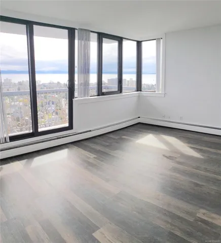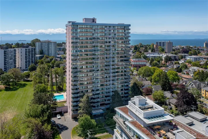 Enjoy stunning panoramic views from this southwest corner suite, showcasing the Victoria waterfront from Ross Bay to Race Rocks, the Olympic Mountains, and the Inner Harbour. This bright, updated home features paint, flooring, countertops, and appliances, plus a spacious primary bedroom with ensuite. Located in a well-maintained concrete building in James Bay, just steps to downtown, Beacon Hill Park, and the oceanfront. Amenities include a heated outdoor pool, hot tub, sauna, workshop, bike storage, and secure underground parking. Monthly fees include property taxes, heat, and hot water.