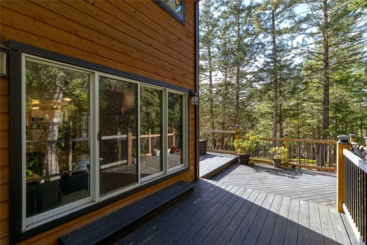 Tucked atop scenic Mount Matheson and set on a private 1.26-acre lot surrounded by towering evergreens, this serene West Coast family home offers the perfect blend of comfort and efficiency. Spacious main floor living includes a bright living room that opens onto a sunny west-facing deck, ideal for relaxing or entertaining, plus a den or guest bedroom on the main level. Upstairs offers three comfortable bedrooms, perfect for family living. With an EnerGuide rating of 56, newer windows and doors, and a high-end freestanding woodstove, the home is both comfortable and cost-conscious. Recent upgrades include a new roof (2024), heat pump (2023), updated kitchen with sliding drawers, and refreshed bathrooms including a refined ensuite. Fresh paint and modern lighting along with a 200 amp panel. Enjoy outdoor living with fire pit, plus ample parking, RV space, and a double car garage perfect for hobbies. A large crawl space provides excellent storage in this tranquil, move-in-ready retreat.