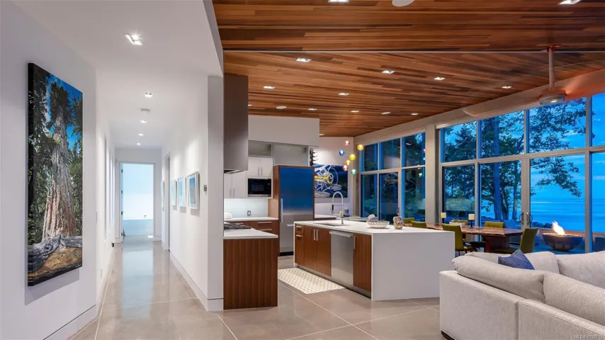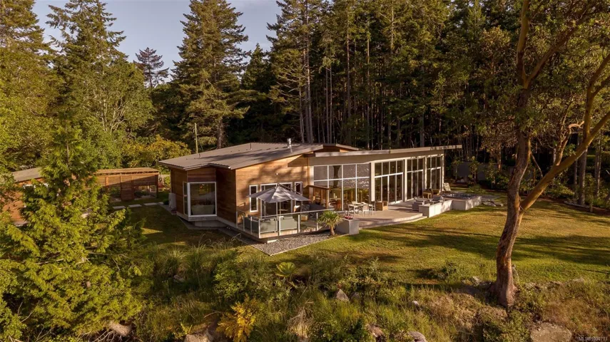 *FOREIGN BUYER BAN AND SPEC & VACANCY TAX EXEMPT* Discover a masterclass in West Coast Contemporary design, set on 1.51 acres of sculptured south-east facing shoreline. This 3,150-sqft sanctuary comprises three distinct “pods” that blur the line between indoor luxury and wild island beauty. Engineered with a concrete moment frame and high-gauge metal roof, the residence features custom clear cedar ceilings, polished hydronic-heated concrete floors, and floor-to-ceiling Westeck commercial windows framing Mount Baker. The 2,400-sqft main pod boasts an expansive great room with a Miele dual-energy stove, Bocci lighting, plus a primary ensuite with a 5-piece bath. Guests will love the private casita attached to the generous 500-sqft double garage, the cozy detached bunk pod, and the massive driveway suitable for boats and RVs. Step onto the waterfront patio to watch orcas, sea lions and eagles, or walk to the Sturdies Bay ferry and “downtown” hub. A rare, turn-key island refuge.
