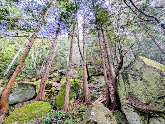 Creatively designed home located on 2 separate title lots with a combined lot size of .86 acres. This two story 1108 square foot, 1 bedroom plus den, 1.5 bathroom home enjoys southwest exposure, taking advantage of its passive solar design. Large primary bedroom and cozy den have ample windows creating bright spaces. The main floor living area enjoys the warmth of a Tempcast Masonry Heater which easily keeps both up and down warm throughout the winter months. Explore the trails that wind through the trees and boulders on the hillside behind the house. A mature apple tree and kiwi vine, flowering bulbs and mature perennials adorn the property amongst the rock work and raised garden beds. This convenient location is walking distance to the beach and ferry terminal, making this a perfect setup for someone looking for a sustainable living experience. The adjoining lot can accommodate a full dwelling, studio, extra garden or just a little more space between you and your neighbour.