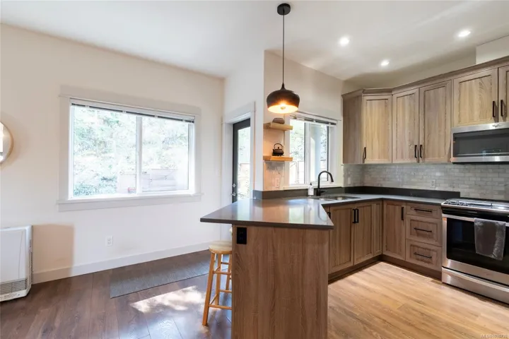 Open House this Sunday 1-3PM – Welcome to 2398 Lund Rd in the sought-after Thetis Glen neighbourhood. Set on a private corner lot, the backyard features a quiet setting surrounded by green space. This meticulously maintained home still feels new, delivering space, privacy, and a seamless layout. The main floor features a bright, open design with natural flow between the kitchen, dining, and living areas. The living area includes a natural gas fireplace and large, bright windows. The kitchen has quartz countertops and plenty of cabinetry. The patio extends out from the kitchen — ideal for entertaining or unwinding in your backyard. Upstairs, 3 bedrms include a spacious primary suite w/ a walk-in and ensuite + upper-level laundry. Energy-efficient natural gas heating. A generous double-car garage provides ample room for vehicles, storage & workspace. Steps from Galloping Goose Trail & minutes to Thetis Lake, this is a neighbourhood built for people who love the outdoors.