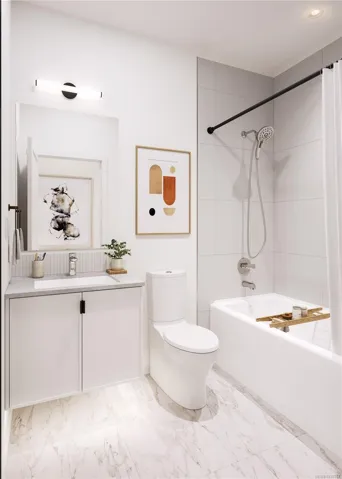 Minutes from UVIC & Camosun, Oak & Stone by award-winning Abstract Developments sets the standard for vibrant, west coast living. Centrally located in the newly revitalized Shelbourne Valley, you’re minutes from the University of Victoria, Camosun College, parks, recreation, and shopping. This 562 sq ft Jr 2 Bed, 1 Bath ground-level home is highlighted by over-height ceilings, expansive windows and a spacious west-facing patio perfect for soaking up the afternoon sun. Show off your cooking skills in your gourmet kitchen featuring quartz countertops, under-cabinet lighting, matte black hardware, a premium stainless steel appliance package complemented by cabinetry in a choice of either white and woodgrain or Fjord green slim shaker. In-home flex space with a window offers a versatile area that can be used in various ways to suit your lifestyle and needs. Includes one parking space and cycling-friendly amenities including dedicated secured bike storage with e-bike charging. Price + GST.