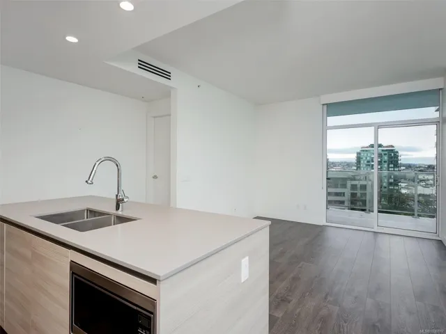 *OPEN HOUSE SAT APR 4th 1PM – 4PM* VIEWS, VIEWS, VIEWS! Welcome to Encore, a modern steel & concrete building where contemporary architecture meets timeless design. This bright corner unit is positioned high in the building & offers sweeping views of the Inner Harbour, city skyline, ocean and Olympic Mountains. With 1,021 sq ft of well-designed living space, the home features a functional 2 bedroom, 2 bathroom layout filled with natural light. The open kitchen includes high-end appliances & gas range, ideal for everyday living & entertaining. Step onto the generous, sheltered balcony to enjoy morning sunrises or relax while taking in the ever-changing views. The primary bedroom offers a spa-inspired ensuite & walk-in closet with excellent separation from the second bedroom. Encore offers outstanding amenities including a heated outdoor pool, fitness studio, outdoor BBQ & fire pit area, owners’ lounge, concierge service, one parking spot, storage locker & all located in vibrant Vic West