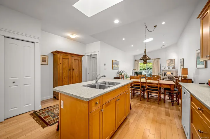 ‘The Woodlands’, a premier patio home development built in 2007, close to nature trails, shopping, golf, the hospital and only 5 min to the airport. This immaculate one level patio home, 1,425 sf, 2 BD/ 2 BA plus den offers engineered hardwood, tile foyer, 9′ -11’ ceilings, and a luxurious ensuite with separate soaker tub and shower. Entertain in the gourmet kitchen, bright and spacious with plenty of storage and countertop workspace, maple shaker cabinets, illuminating skylight overhead, and large island with seating for your guests. The vaulted ceiling in the Great room adds architectural interest and height to the open plan creating a comfortable setting to enjoy the ambience of the gas fireplace. With large sliding door access to the private patio with terraced gardens, relax and enjoy the peaceful sounds of summer. Follow the local trails and walkways through the extensive greenway system & the adjacent Lerwick Forest. New roof 2021, Heat pump for heating/cooling – 2024, 2 pets.
