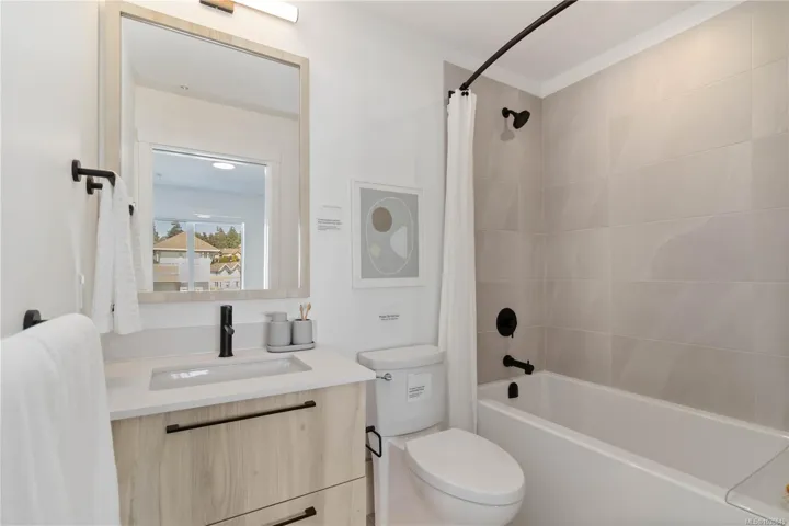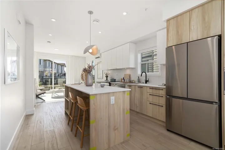 Timeless coastal elegance meets contemporary refinement in this custom designed Show Home. Superior finishings include: engineered stone countertops, sophisticated two-tone millwork, & culinary kitchen graced with modern appliances. A cozy fireplace anchors the living space, while picture windows & soaring 9′ ceilings flood the space with natural light. Primary ensuite with heated flooring, frameless glass shower, & floating vanity. Complemented by a sun-soaked balcony, roller shades, & EV charger rough-in. Set within the celebrated Royal Bay community where residents enjoy exceptional walkability to endless walking/biking trails, sandy beaches & the wealth of amenities provided by the Commons Retail Village offering shopping, dining & entertainment options. Visit the Presentation Centre at 394 Tradewinds Ave, open Sat–Thurs, 12–4 pm. All measurements are approximate. Price does not include GST. Photos shown are of the exact unit.