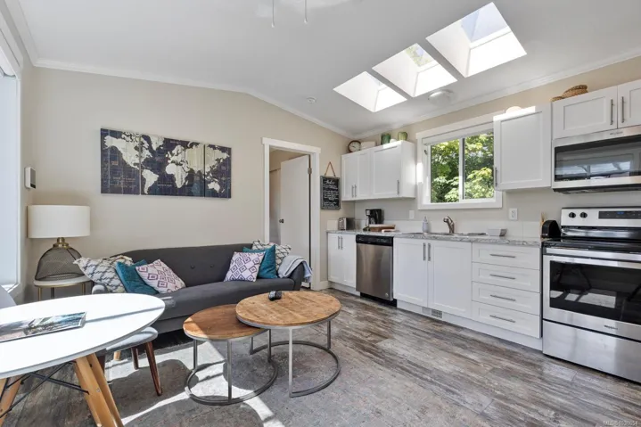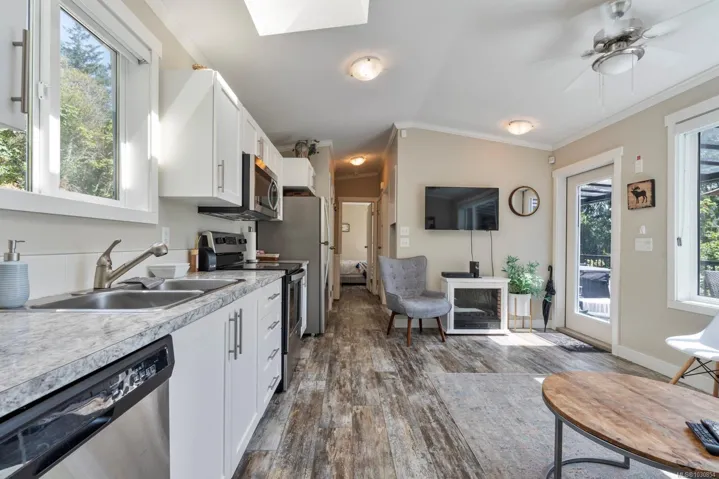 NEARLY 400ft OF OCEANFRONT – SUB DIVISION IN PROCESS – 5211 Sooke Rd is a private oceanfront lot with ample opportunities. Situated before the Sooke core, sits this 8 acre waterfront and view lot with two existing dwellings with the potential for building your dream house on a cleared portion above with exceptional mountain and ocean views accompanied by existing separate access. Existing dwellings are both 2 bed + 1 bath, at 1,064sqft and 618sqft respectively with the small cabin featuring hot tub, is excellent for an investment property. With a park-like landscape with trails down to the private cove sandy beach waterfront, private access to the Galloping Goose trail that runs through the property, picturesque views of the Hutchinson Cove and south facing sun. This incredible 8 acre property has an existing application to subdivide which opens up exceptional value including multiple dwellings on each lot. The possibilities are endless.