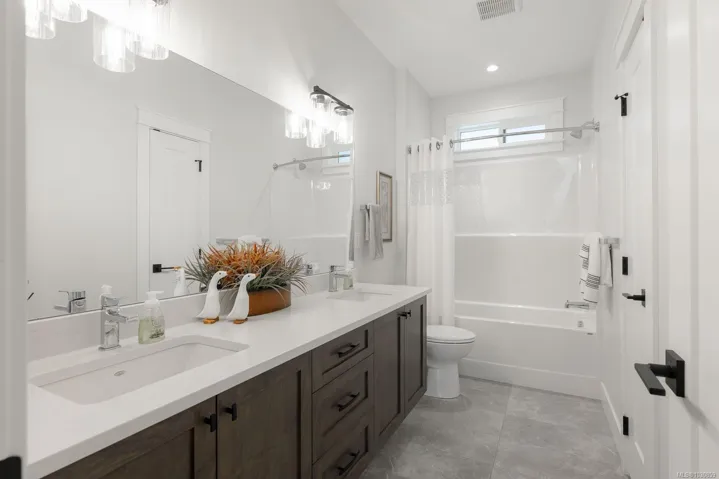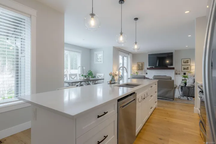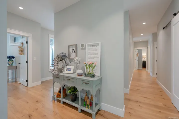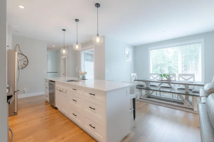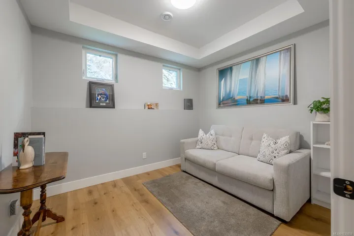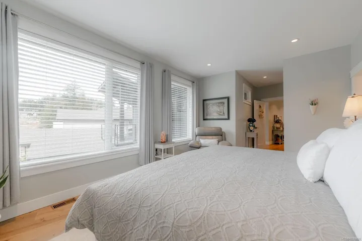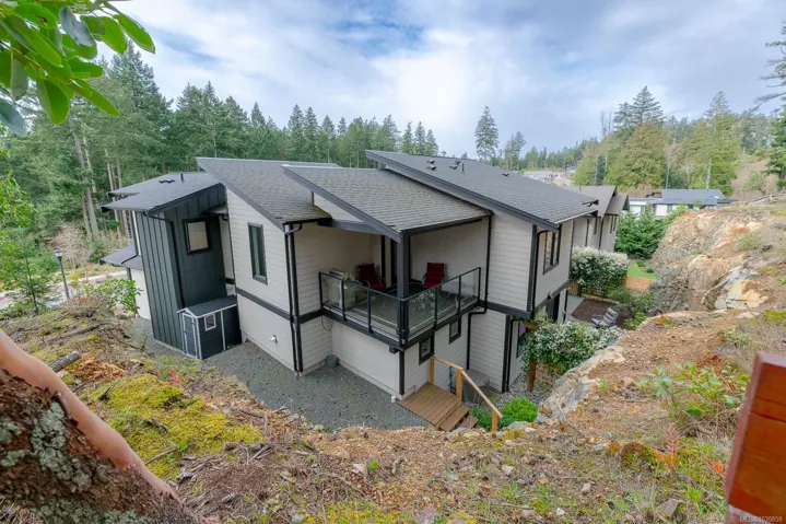 Immaculate executive home in desirable Hammond Bay on a quiet no-thru road, offering 3,317 sqft of quality living space. This home features 5 bedrooms plus den and 5 baths, including a 2-bed legal suite with its own hydro meter & covered parking. The main home offers a spacious foyer with den & 2-piece bath on the lower level, leading upstairs to a bright open-concept great room with oversized granite island, walk-in pantry, & seamless flow to dining and living areas with gas fireplace & built-in cabinetry. There are 3 bedrooms & 3 baths, including a spacious primary suite with luxurious ensuite featuring soaker tub, walk-in shower & makeup vanity. Enjoy 2 balconies, one in the front, including a private rear deck with gas hookup & ocean glimpses. The legal suite is beautifully finished with open kitchen, new heat pump, quartz counters & private patio with hot tub. Additional features include heat pump, on-demand hot water, high-efficiency furnace, double garage & low maintenance yard.