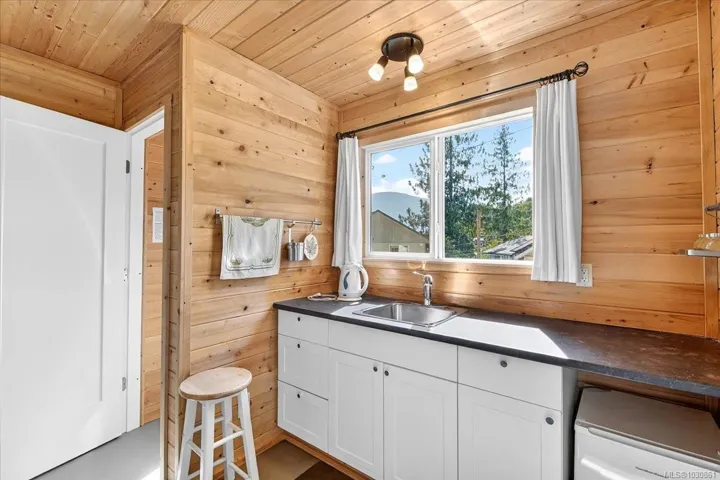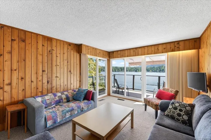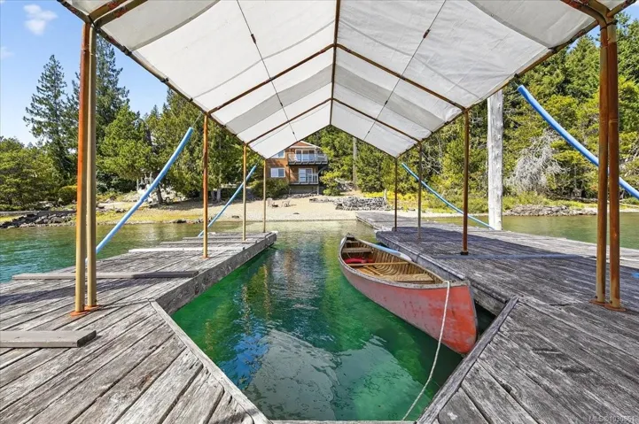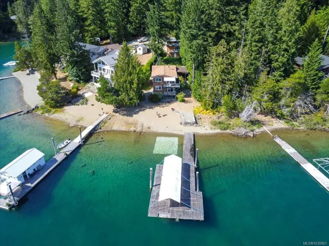 Sproat Lake Waterfront ~ This south facing jewel sits on a quiet cul-de-sac & boasts expansive views from all levels. Private sand beach, fire pit & dock have enough room for multiple boat moorage & a single boat wraparound slip fully protected easy entry and exit for your vessel. A new two tone designer kitchen features quartz counter tops and new appliances. The heating and a/c are provided by an efficient ductless heat pump, plus a Jotul woodstove for winter heat and ambience. The main level features living room looking out to the lake, kitchen, dining room, primary bedroom & a 3pc bathroom. The lower level features 2 bedrooms, a new 3 pc bathroom, laundry area & dedicated tool room. The 2 car carport is built with two different height options to accommodate a boat/RV storage and has EV dedicated wiring available. The carport also has a charming new guest suite complete with washroom facilities and mini kitchen. Furnishings included. Family lake getaway ready to be passed down.