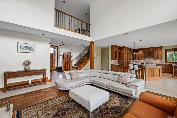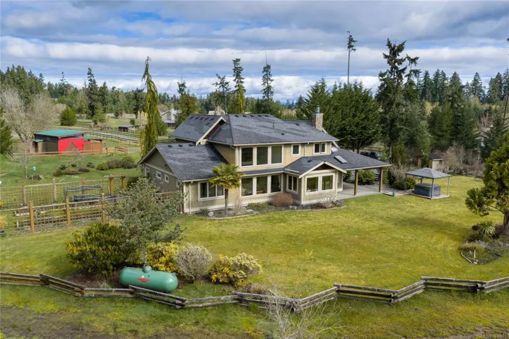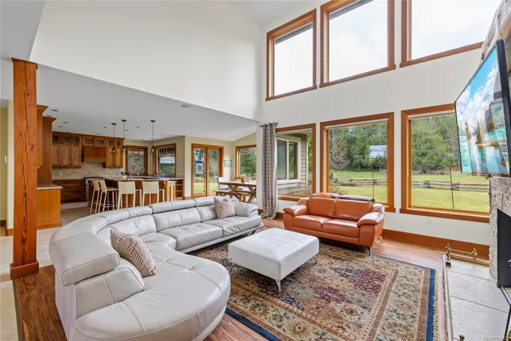 Private Rivers Edge retreat on 7.07 acres! This impressive home offers nearly 4,000 sq.ft. of finished living space with a bright open-concept main level and a dramatic two-storey great room showcasing peaceful pasture and forest views. A stunning stone fireplace with live edge wood mantle anchors the space, while the chef’s kitchen features custom cabinetry, granite counters, a large island, and premium appliances. The main level primary suite allows for easy living with a spacious ensuite and walk-in closets. Upstairs offers additional bedrooms plus a large bonus/media room. A full-height, drywalled basement provides excellent potential for future use. Enjoy year-round outdoor living on the covered patio with wood-burning fireplace. The property is well set up with fenced pastures, a two-stall horse shelter, and a riding ring, all in a private and picturesque setting.