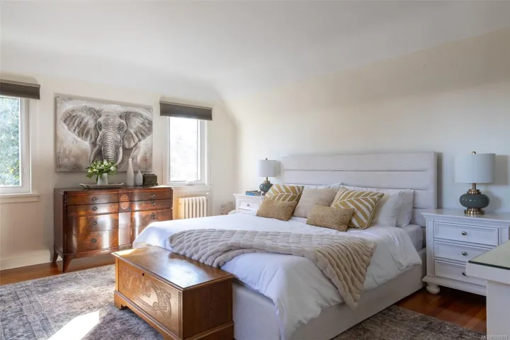 This architectural gem is located in the highly sought after Rockland neighbourhood. Beautifully renovated, this 1941 character home features a spectacular floor plan with 4 bedrooms, 3 bathrooms and stunning vistas. Beautiful hardwood floors with mahogany inlay, coved ceilings, french doors, and two gas fireplaces showcase the home’s classic character while complementing modern updates. The custom Urbana chefs kitchen with premium appliances and a large island opens to a bright family room, sunroom, and multi-level decks, including a covered BBQ lounge with gas heater for year-round enjoyment. The spacious primary suite features a beautifully appointed ensuite with radiant in-floor heating. Recent updates include new windows and hot water tank (2025), refreshed paint, bathroom improvements, landscaping enhancements, and an EV charger. Walk to Oak Bay Avenue, downtown, Government House, and Craigdarroch Castle. A rare opportunity to own a fully updated Rockland character home.