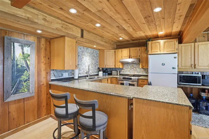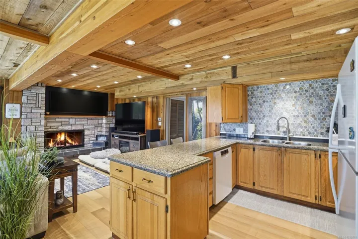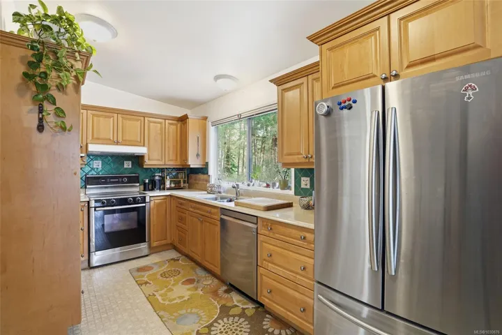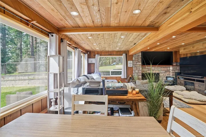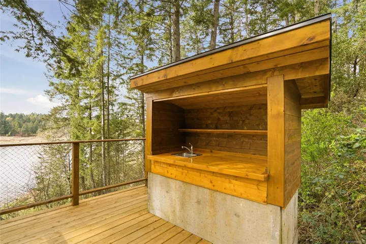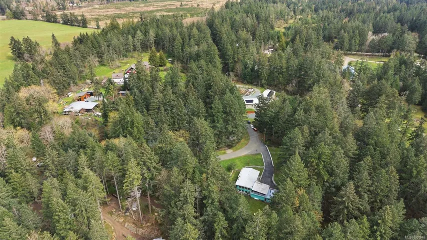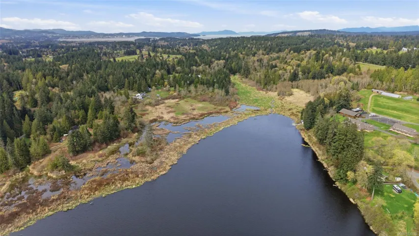 A rare chance to own your own peaceful retreat—properties like this seldom become available. Set on serene 0.64-acres, it offers solitude on a quiet rural cul-de-sac. The home enjoys tranquil views of, and swimmable and fishable access, to Holden Lake—itself bordered by gorgeous Hermer Park. A bonus custom-crafted “sunset deck”, is ideal for peaceful mornings and golden sunset evenings. Inside, mid-century modern elements are highlighted by expansive windows framing the natural landscape. A spacious partially covered deck off the kitchen extends year-round enjoyment. The flexible layout features two bedrooms up, with a separate 2-bedroom in-law suite below. A detached studio off the double garage offers space for guests or creative pursuits. Notable updates include new roof, 18 kw backup generator, UV water filtration, upgraded electrical with EV charger, and heat pump. A unique offering combining privacy, lifestyle, and investment potential. All data approx & should be verified