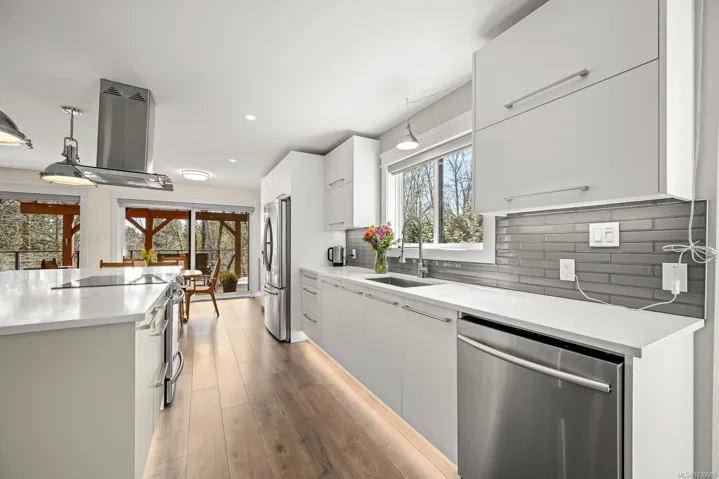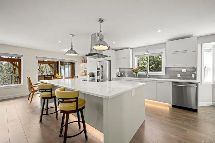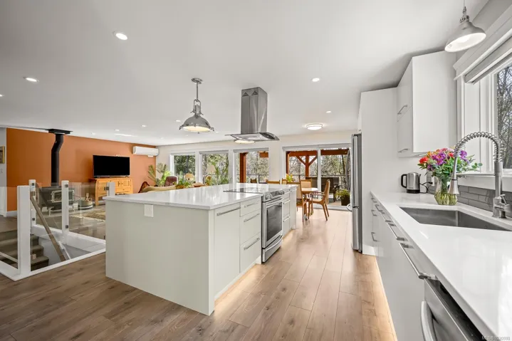 This beautifully renovated, modern rancher with walk-out basement sits on a private 0.61-acre high bank riverfront property on the Puntledge River, offering space, style & stunning natural backdrop. With 2,982 sq ft spread over two levels, this 4-bedroom, 3-bathroom home features a bright, open-concept layout filled with natural light. The main living area is warm & inviting with a cozy woodstove, while the modern kitchen is perfect for everyday living or entertaining. Step outside to relax on the expansive deck while taking in the natural surroundings. There’s a flexible floor plan on the lower level with a spacious family room, bed & bath; perfect for teens, guests or extended family. Mini split heat pumps offer year-round comfort. The yard is a serene, treed setting that enhances privacy and connection to nature. This is a rare opportunity to own your own private oasis that’s only a short drive to the amenities of town, Mt. Washington & the mountain biking mecca of Cumberland.
