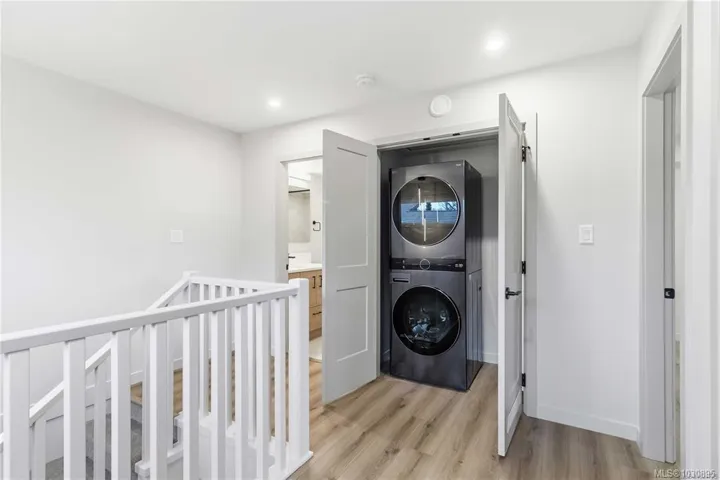 #4 at 1789 Emerson – a thoughtfully designed, open-concept layout with 2 bed & 1.5 bath. Located on sleepy Emerson St, this home provides a serene setting within easy reach of urban amenities. The spacious kitchen, dining, and living areas flow seamlessly, creating an inviting space for both daily life and entertaining. Upstairs, you will find a work from home space and 2 bedrooms with a large main bathroom. Modern luxuries include efficient heat pumps for year-round comfort and heated bathroom floors for a touch of everyday indulgence. With its own secure electric bike storage unit at the rear of the property, and set in a walkable, well-connected neighbourhood, this residence offers the perfect blend of convenience, function, and sophistication. Move in ready. Price + GST