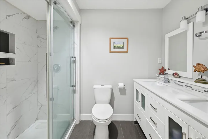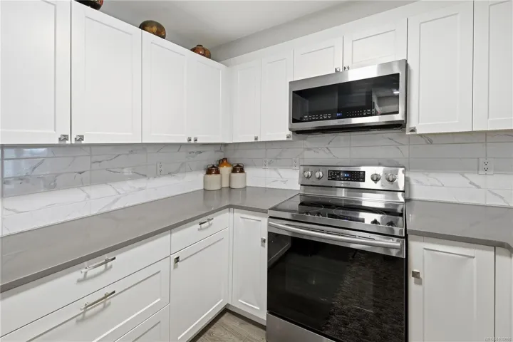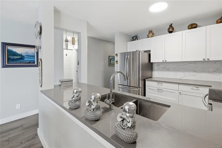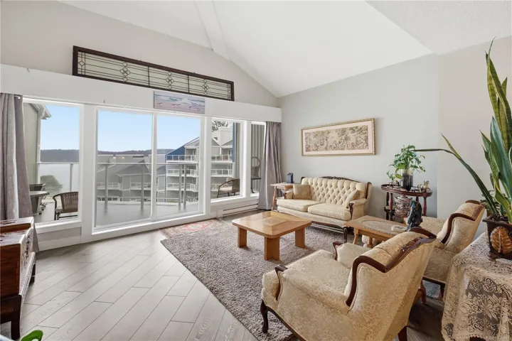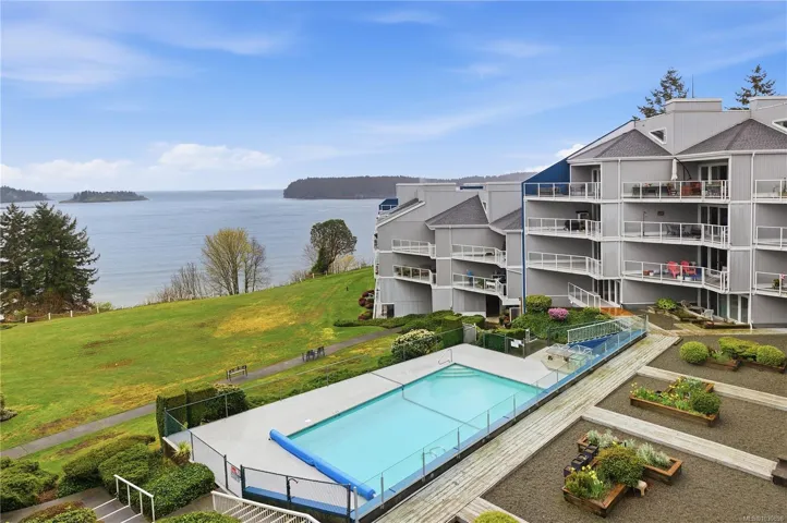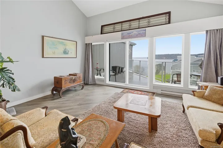Ocean views, full amenities, a large heated pool, an indoor spa, and a completely restored complex. This large 2-level penthouse at Seascape delivers exceptional value in Departure Bay. The entire building has undergone a major restoration, giving buyers confidence and a fresh start moving forward. The home has been beautifully updated with a modern kitchen featuring white cabinetry, quartz counters, Stainless Steel appliances, and an open layout that connects seamlessly to the dining and living areas, all positioned to take in the ocean views. The main level offers a spacious second bedroom along with a fully updated 4-piece bathroom. Upstairs is where this unit stands apart, an expansive primary suite of over 600 square feet with a large walk-in closet and a fully updated ensuite featuring a tiled shower, double vanity, and quality finishes throughout. 1 or 2 cats are welcome. Sorry, no dogs allowed.