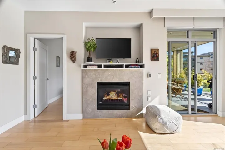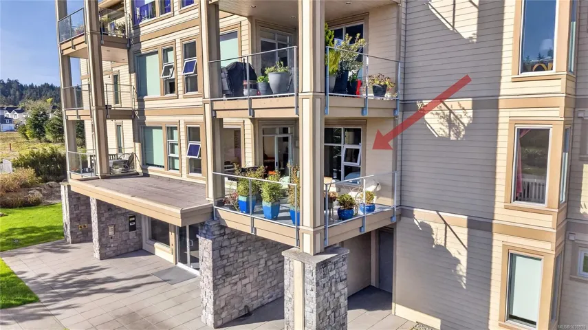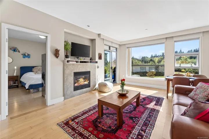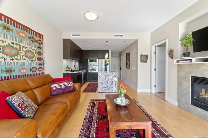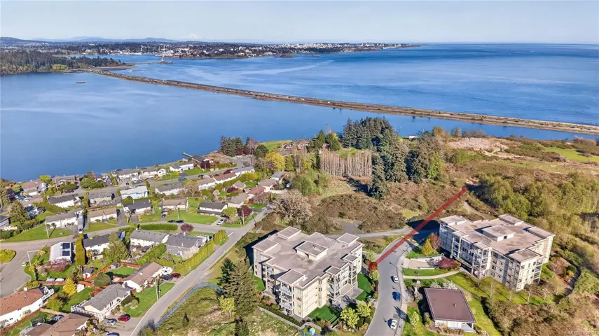 *OPEN HOUSE: Sunday-04/19/2026 from 01:00 PM to 3:00 PM** OCEAN GLIMPSES, GEOTHERMAL & PET FRIENDLY. Embrace an effortless lifestyle in this executive residence steps from the ESQUIMALT LAGOON. This 1BD + DEN home features an OPEN-CONCEPT LAYOUT with 9FT CEILINGS, GAS FIREPLACE, and banks of LARGE WINDOWS. The GOURMET KITCHEN impresses with a LARGE ISLAND with WATERFALL GRANITE COUNTERS, a natural gas cooktop, and stainless appliances. Enjoy privacy with a SEPARATE DEN and a PRIMARY SUITE boasting a CUSTOM CLOSET ORGANIZER and CHEATER ENSUITE with SOAKER TUB and WALK-IN SHOWER. Relax on the 166 SQFT COVERED PATIO or explore the nearby BIRD SANCTUARY, beach food trucks, and ROYAL ROADS UNIVERSITY grounds. Amenities include GEOTHERMAL HEATING/COOLING, BIKE STORAGE, UNDERGROUND PARKING, STORAGE LOCKER, and EV CHARGING (STANDARD PLUG). PET FRIENDLY with no size restrictions (2 pets). BBQS ALLOWED. Near JUAN DE FUCA REC and ROYAL BAY. Your Westcoast lifestyle beckons!