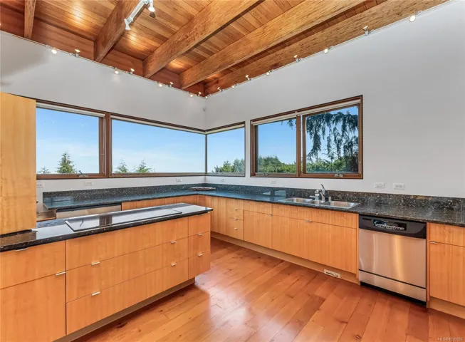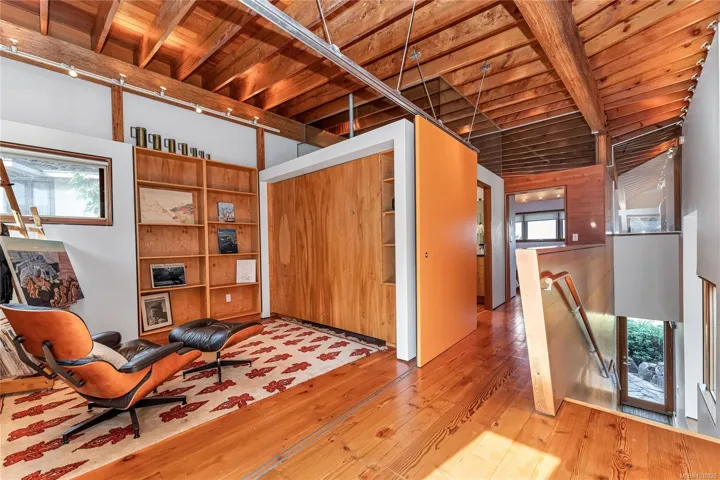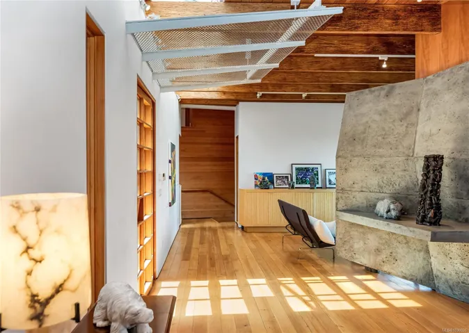 Available for the first time “Boulder House” is an architectural and sustainable-design icon. This one-of-a-kind residence seamlessly integrates with its .45-acre landscape, boasts 180° Salish Sea views. Natural light, exposed engineered fir beams, reclaimed fir floors with radiant heat, a dramatic see-through concrete crystal-inspired fireplace, and custom cabinetry are among its hallmarks. The chef’s kitchen features sculptured, building block-design cabinets, natural granite countertops, and premium appliances. The primary suite offers a private terrace and a spa-inspired ensuite. A two-car garage, elevator, rooftop deck offer more; flex rooms support up to 4 bedrooms and concrete and steel construction can support expansion. Featured in The New York Times and other publications, Boulder House is blocks from John Dean Park, and a short drive to Victoria International Airport, Swartz Bay ferry terminal and downtown Victoria. Tranquility, luxury and architectural excellence await.