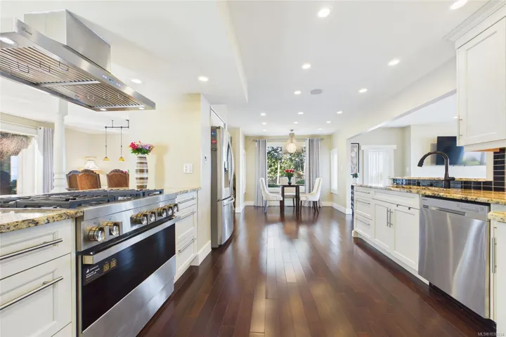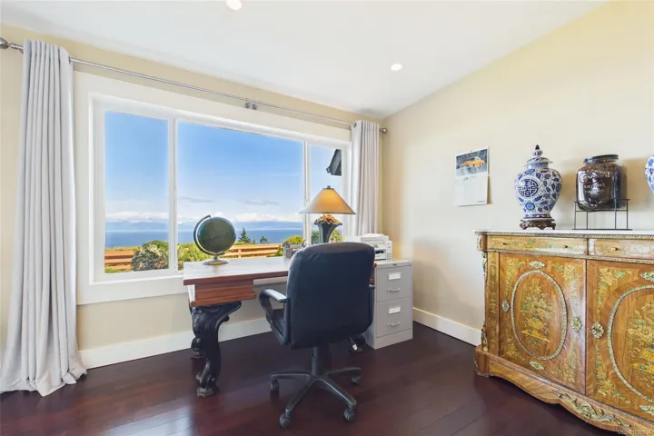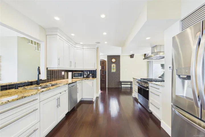 A truly rare opportunity to own a private residence that seamlessly combines exceptional privacy with breathtaking panoramic ocean views,overlooking the Georgia Strait & Coastal Mountains. This stunning home was fully renovated in 2011, offering a perfect blend of timeless modern comfort. This elegant home also features a bright open layout with hardwood floors, vaulted ceilings with exposed beams & a stone gas fireplace. The chef’s kitchen boasts granite counters, shaker cabinetry & premium stainless appliances. Expansive windows & sliders maximize natural light & capture stunning views, a view-facing office, luxurious primary suite with 5-piece ensuite, a separate private living area with its own ensuite—ideal for guests or family. Multiple decks & terraces enhance outdoor living. Approx. $100K in recent upgrades incl. appliances, cedar deck, backyard, sun room & variety fruit trees. Just minutes to all city amenities. All data, information & measurements approx, verify if important.