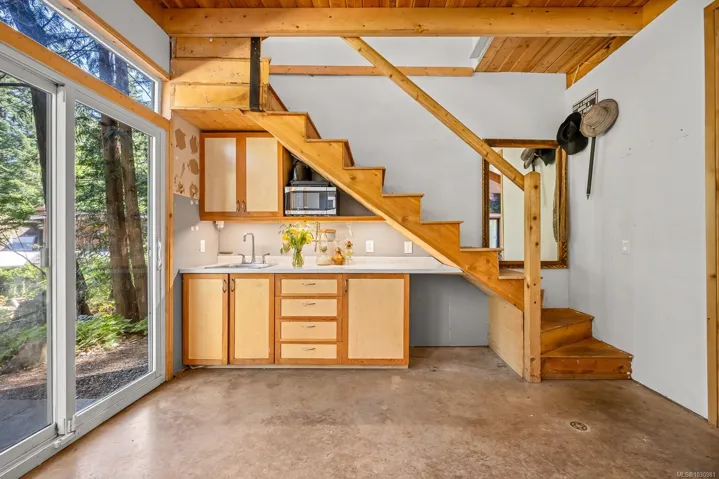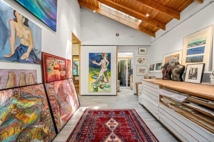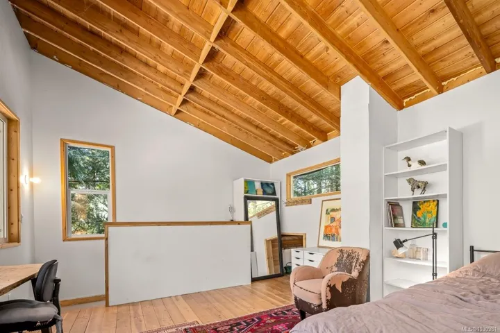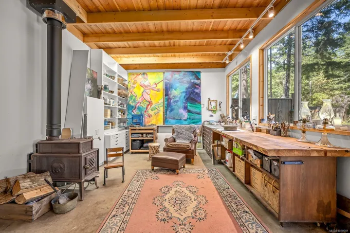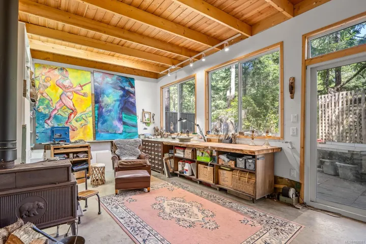 This versatile 0.591-acre property blends natural beauty with practical space, making it ideal for artists, gardeners, or families seeking a peaceful and/or active lifestyles. Terraced landscaping offers privacy, with beautiful flowering gardens, a tranquil pond, mature fruit trees, and greenhouses. The main residence features vaulted ceilings in an open-concept layout, a recently updated kitchen, and a heat pump. Fireplaces offer cozy living in winter while outdoor spaces provide settings for summer family gatherings. The detached artist’s studio is a modern, well-built, private space perfect for creative work or a home-based business, with its own entrance and parking. Additional features include a drilled well, two cisterns, a rainwater collection and septic systems. Whether you’re nurturing creativity, running a home business, or looking to enjoy the many beaches, mountain bike and hiking trails—this property offers flexibility, functionality, and room to grow.