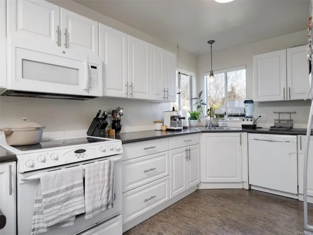Set on one of Vic West’s most loved tree lined streets, this well maintained 4 bedroom home offers flexibility, comfort & an unbeatable community setting. Pine Street is known for its welcoming neighbourhood feel & memorable Halloween block party, all just a half block to the waterfront park. The bright main level features vaulted ceilings, a feature fireplace, an open living concept and a large dining area with space for big family dinners. The kitchen opens to a west facing deck, perfect for BBQs and evening sun. Upstairs offers 2 bedrooms, while the lower level includes a spacious 2 bedroom in-law suite with second kitchen, separate entrance and living room with wood stove. Also on the lower level is space for a workshop or bikes and motorcycles, and a crawl space for extra storage. The fenced yard and easy care back deck complete this appealing home close to downtown, Banfield Park, the Gorge & the Selkirk Trestle. Great for buyers seeking a comfortable home with added income.