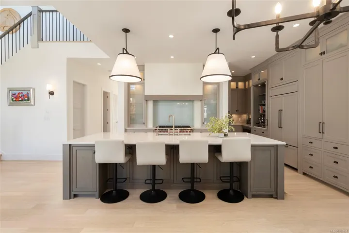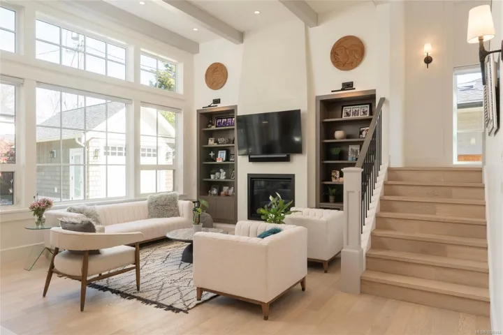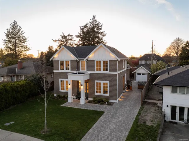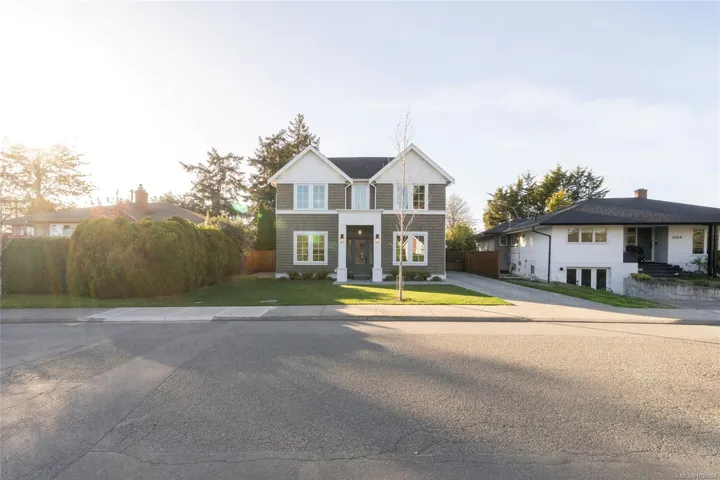 Built in 2023 and set in Oak Bay, this beautifully crafted 4 bedroom, 5 bathroom residence by multi-award-winning Zebra Design Group offers refined design and exceptional value. Planned for luxury family living, the home showcases custom cabinetry, detailed millwork, and high-end finishes throughout. The main level features 10 foot ceilings, a dramatic vaulted living room, spacious family room, practical mud room, and main floor office for added flexibility. The chef’s kitchen is appointed with an 8-burner Wolf range, Sub Zero refrigerator, and a pantry area with a dedicated Sub Zero wine fridge. A generous dining area opens to the private backyard, complete with a hot tub and detached garage, creating a peaceful outdoor retreat. Upstairs, all 3 bedrooms include their own ensuite, alongside a full laundry room. Close to Estevan Village and just over 1 km to Willows Beach, with excellent access to Oak Bay amenities.