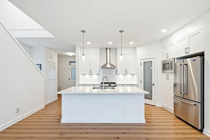 Welcome to this beautifully upgraded Westwick home in the heart of Royal Bay, offering over 3,100 sq/ft of thoughtfully designed living space. Open-concept main level filled w natural light, chef-inspired kitchen w quartz counters, full-height cabinetry, under-cabinet lighting, spacious island & walk-in pantry. Dining area flows seamlessly into the inviting living room anchored by a modern gas fireplace & opening onto the private rear deck, while a dedicated office, powder room & mudroom add everyday functionality. Upstairs, the spacious primary suite is a true retreat w a luxurious 5-piece ensuite, plus two additional bedrooms, full bathroom & flexible family room. Versatile walkout lower level offers a large rec room (kitchen roughed-in for legal suite), bedroom, full bathroom, laundry hookup & separate entrance—ideal for extended family/legal suite potential. Set on a sunny lot with a premium vinyl deck, easy-care yard, hot water on demand, HRV & detached double garage.