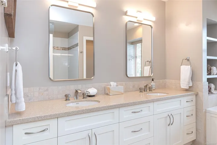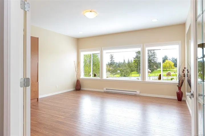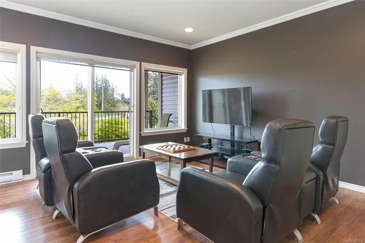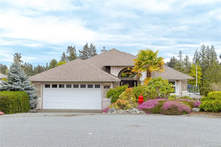 Welcome to 843 Country Club Dr in the sought-after 55+ gated community of Arbutus Ridge. Enjoy resort-style living with golf, tennis, pool, clubhouse, fitness center, and 24-hour security, just a short drive to Victoria and Nanaimo. This beautifully maintained 2-bed, 3-bath home offers over 2,800sq ft of quality craftsmanship and bright, open-concept main-level living. Expansive windows and soaring 11-foot ceilings on the main level showcase panoramic golf course views extending to Salt Spring Island. The living, dining, and kitchen areas flow onto a wraparound deck with glass railings. The kitchen features granite countertops, a tiered island, and premium appliances. The main-floor primary bedroom includes deck access, a walk-in closet, and spa-like ensuite. The lower level offers elevated 9ft ceilings, a guest room, bath, media room, family room for gym, craft room, and ample storage. Move-in ready!