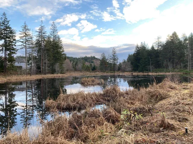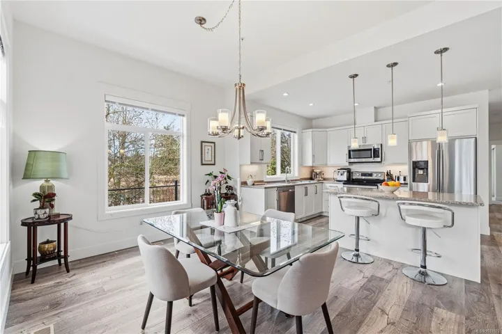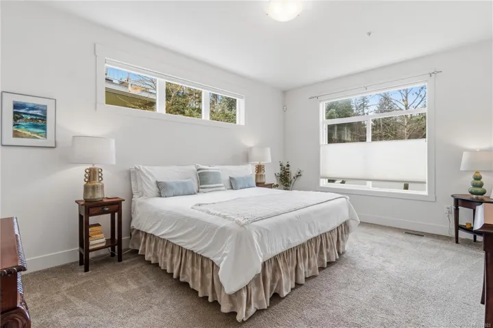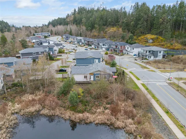 This spacious Linley Valley rancher built in 2019 offers 2 bdrms, an office/den, 2 full baths, open-concept living with 9-ft ceilings (10 ft in great room), abundant natural light. Generous primary suite features large windows, huge WI closet, 5-pce ensuite w/separate shower & soaker tub. Located beside a picturesque pond & natural ridges, enjoy ever-changing views of wildlife & nature from every window. SS kitchen appliances, quartz countertops including a large island, high-quality laminate flooring, tile in bathrooms, gas fireplace, convenient on-demand hot water, large double garage. Private, southwest-facing patio off living room, surrounded by greenery, perfect for flower pots, BBQs, birdwatching. Nestled in a quiet, highly desirable area of North Nanaimo on a no-through road, this home is steps away from walking trails, protected forests & wetlands. Rare detached home in friendly strata, park-like setting, pets welcome. Near shopping, schools, parks, & wide range of amenities.