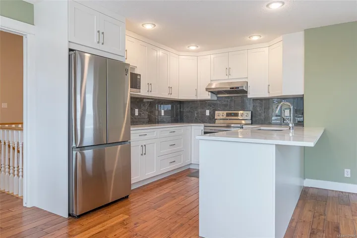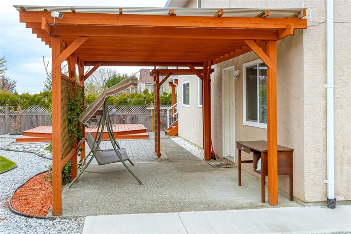 Well-maintained and extensively upgraded family home in desirable North Nanaimo, featuring a bright self-contained 2-bedroom suite ideal for multi-generational living. The main level offers a functional layout with a peninsula kitchen, spacious family room, and generous living and dining areas, plus 3 bedrooms including a primary suite with ensuite and walk-in closet. Enjoy ocean views from front and rear decks. The lower level includes a welcoming entry and flexible space for a home office or 4th bedroom. Updates include fully renovated kitchen, bathrooms, hardwood flooring, high efficiency furnace, newer hot water tank,2 French doors and Vinyl windows. Additional highlights include durable metal roof, fully fenced, well-designed backyard with beautiful patio and new RV/boat parking. Deep double door garage and ample parking. Rare opportunity to own a move-in-ready home in North Nanaimo. Measurements are approximate & should be verified if important.