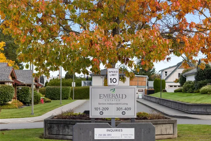 Emerald Estates Independent Living Patio Home features 1 bedroom 1 bath ensuite unit with large windows and French Doors leading out to your private patio make this unit light and bright. This unit is very spacious with an open layout for Living room and dining room, has vaulted ceilings and a compact kitchen. This lifestyle provides you with light housekeeping weekly with linen laundry included in your strata fees as well as an affordable optional dining program with home cooked meals (currently 4 days/week). This complex has secured entrance, is wheel chair friendly, shared laundry and is close to town, shopping, coffee shops and parks and has lovely landscaped grounds. The atmosphere is friendly with lots of opportunity for socializing so a perfect set up for those 55+