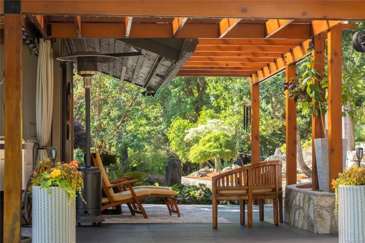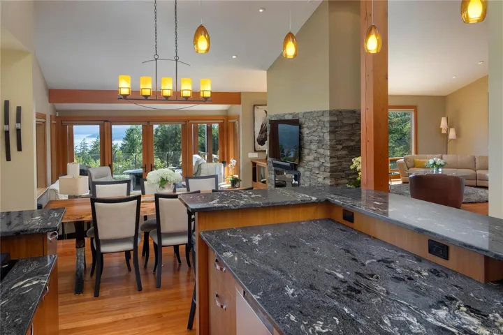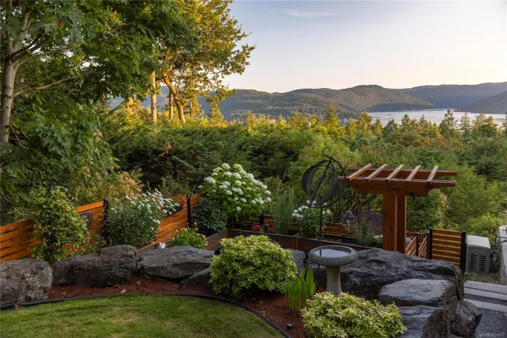 This luxury home and its impressive grounds feel like a remote resort, but the exclusive location gives you convenient access to amenities, services, and recreational destinations. Overlooking the Saanich Inlet, the property displays jaw-dropping ocean views. Southwestern exposure helps you make the most of daylight hours and elevates each sunset into a private spectacle. Within the home, fine details abound. Those include African hardwood floors and vaulted ceilings; showpiece fireplace with stone surround; black granite surfaces anchoring a chef’s kitchen; and a stylish, bespoke guest suite. Landscaped grounds offer an enclosed garden, workshop, oceanview studio, and elevated firepit, all while leaving room for additional outbuildings or subdividing. For a day of golf or a trip to a Saanich winery, for forest trails or beach walks, for downtown shopping or YYJ int’l travel, this 4.6 Acre estate puts it all within reach, yet gives a sense of seclusion and peace with world-class views!