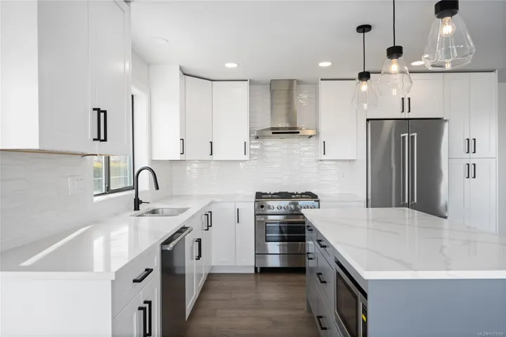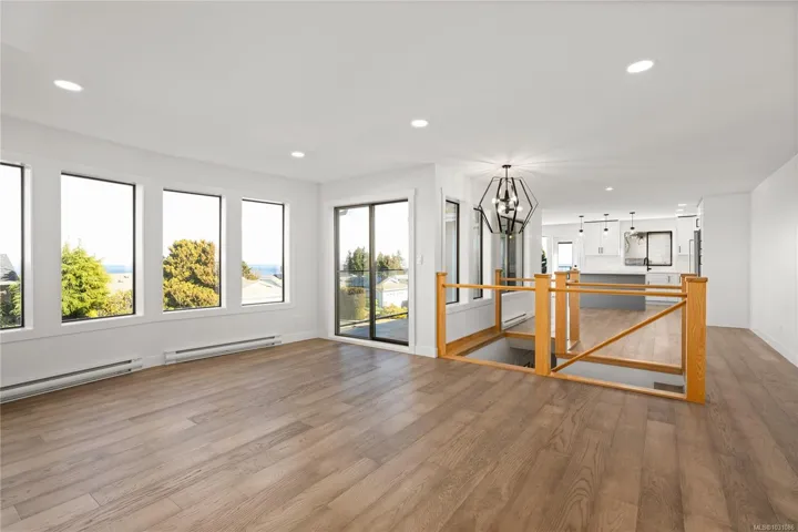 Renovated Ocean View Home in Prestigious North Nanaimo. This modern family home is just steps from Invermere and Blueback Beaches, with all the best urban amenities less than five minutes away. Offering multiple outdoor spaces to enjoy all four West Coast seasons. The main level is open concept with custom kitchen cabinetry, quartz counters and engineered hardwood floors flowing into the living room. There are three bedrooms and 2 renovated bathrooms on the main, including the primary with 3 piece en-suite offering a custom walk in tile shower.The lower level provides an unauthorized bachelor suite that could be opened back up the main or used as a mortgage helper or family member. The exterior has been hardi-plank sided and decking redone. There are also multiple storage areas and both units have their own laundry. Photos from prior to tenancy.All measurements are approximate and should be verified if important to the buyer.