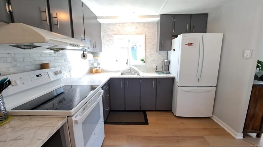 This home has been meticulously transformed with high-end upgrades completed in late 2025. The structure was professionally leveled & secured with new tie-downs & skirting. The exterior shines with new premium vinyl siding, new gutters, & a 25-year high-grade shingle roof. Inside, enjoy a fresh, modern aesthetic with new paint throughout & high-quality laminate flooring. The chef’s kitchen with all-new appliances, & the stunning new renovated bathroom has a stylish new tub, surround, vanity & flooring. Peace of mind with a new 10-year warranty hot water tank & the complete removal of Poly-B plumbing, replaced entirely with new lines. The property offers a fully fenced yard with new 6ft cedar fencing & fresh landscaping. Offering land ownership & unmatched value.