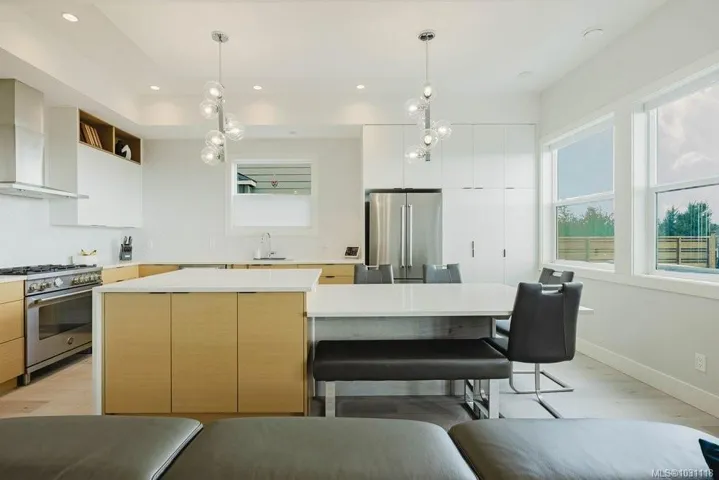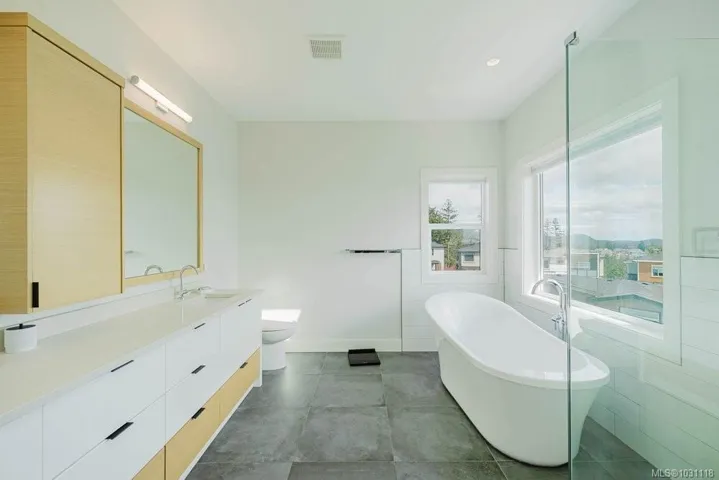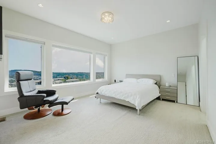 Beautifully designed with an exceptional layout, this home offers indoor-outdoor living at its best. The main level opens to a backyard through French doors – while an abundance of windows fills the space with natural light and showcases the views. Enjoy a spacious deck, hot tub, and fully fenced yard, all perfectly positioned to capture breathtaking sunrise views over the city, mountains, and ocean, including Mt. Baker. This connection between indoor and outdoor spaces creates an incredible setting for entertaining or quiet mornings in the sunshine. Upstairs offers 3 beds including a primary with a 5-piece ensuite and walk-in closet. A bright LEGAL suite above the double garage (with EV charger) provides excellent income potential or pristine accommodation for family. Quality finishes throughout including a chef-inspired kitchen with Bertazzoni appliances and quartz counters. Located across from a park and bike park, this is West Coast living at its best!