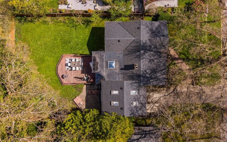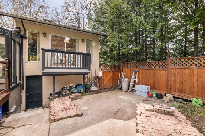 Set on a large, fully fenced lot, the backyard includes a Garry oak and fruit trees, including a prolific peach tree. The spacious deck is ideal for outdoor dining and barbecues.