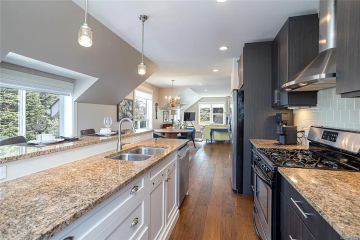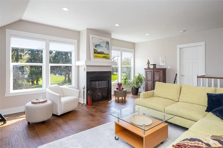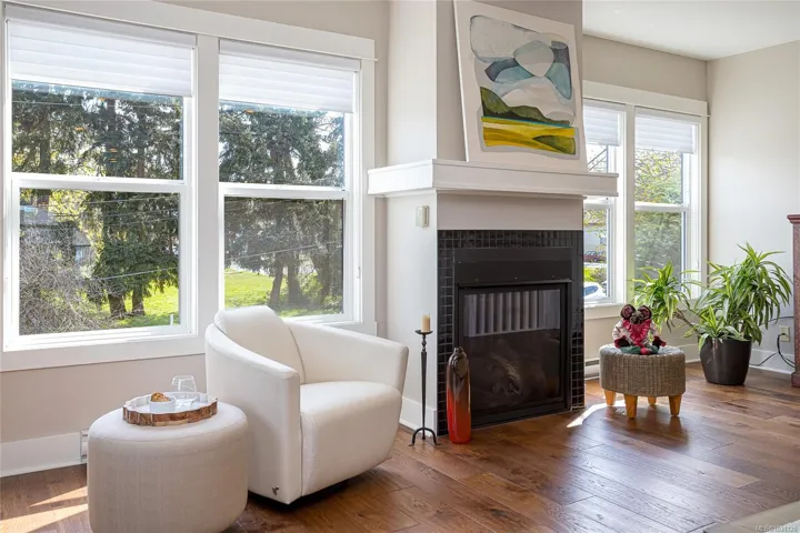 Beautifully updated top floor 3 bed/2 bath home in a charming character conversion in sought-after Vic West! A bright, spacious home, filled with natural light from four exposures and a fresh, modern feel throughout. Featuring gleaming hardwood floors, gas fireplace & a well-appointed kitchen w/ large island. The primary bedroom has a walk-in closet & 3-pce ensuite. A private west-facing balcony with gas BBQ hookup is accessible from both kitchen & primary bedroom. Enjoy beautiful Banfield Park views along with Selkirk waterway greenery. Additional highlights include storage shed, dedicated parking & remote-control keypad lock. This special home sits just steps away from the popular Gorge Waterway dock. Nearby, you’ll have quick access to “The Goose” Trail, a playground, tennis courts & community centre. Neighbourhood attractions include Fry’s Bakery, Spiral Cafe, The Market Garden, & easy access to downtown & highways! Don’t miss out on this rare 3 bedroom home in vibrant Vic West.