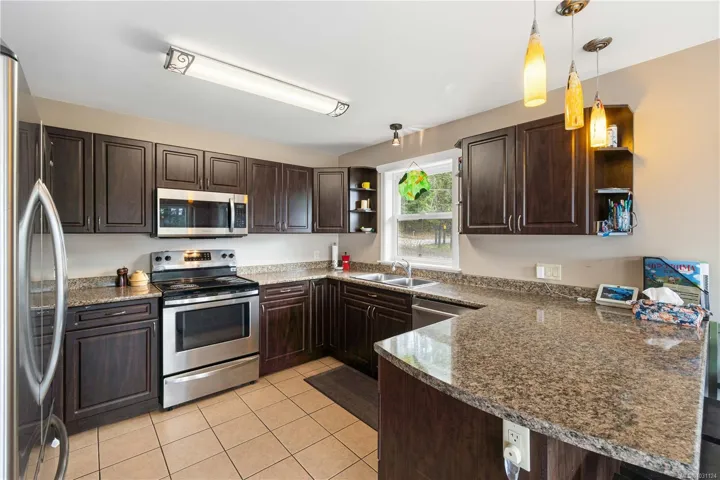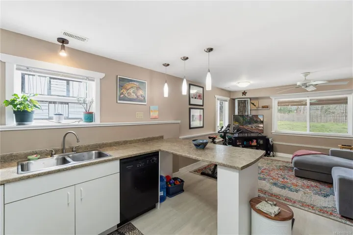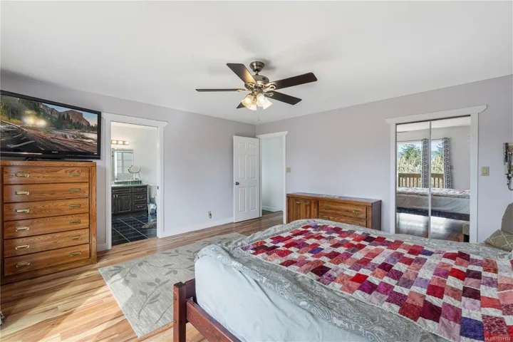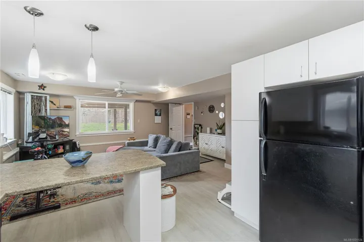 Large family home with suite in semi-rural South Wellington. The level-entry main floor offers a formal living room and den at the front of the house before opening into an open-concept family space at the rear with spacious kitchen, family room, and a dining room large enough to accommodate all of the holiday dinners. A full wall of windows floods the home with natural light, with sliders opening onto a stamped concrete deck for relaxing in the sun. Upstairs are three generous bedrooms, including the primary suite which spans the entire width of the home and features a huge ensuite bath and a deck looking out towards farmland and the mountains. Laundry for the main home is conveniently located in the upper hall across from the main 4pc bath. Downstairs is a well-appointed in-law suite with a separate entrance off the lower mudroom. A heat pump provides efficient heat and cooling. The property provides plenty of parking, RV access and lots of room to run and play in the level backyard.