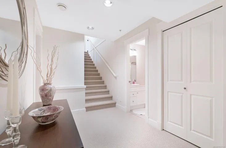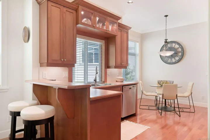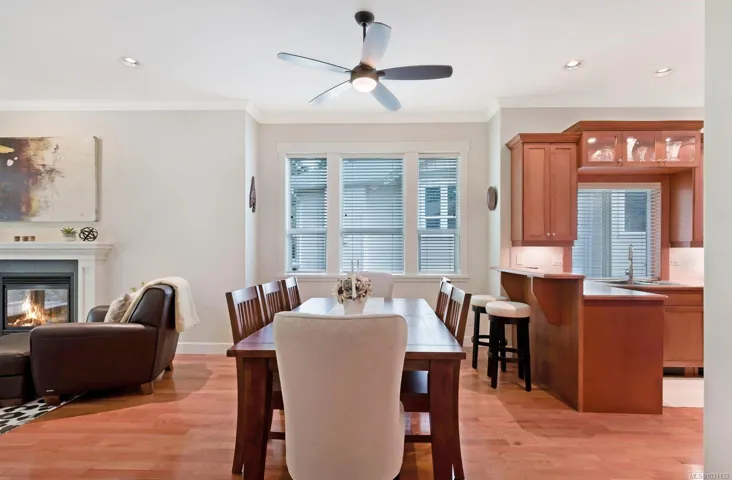 Experience life at The Rocklands in this immaculately maintained level entry townhome that is sure to impress. Upon entering, you are greeted by a higher quality of finishings throughout, including solid wood floors, 10 foot ceilings, interior fir doors with transom glass, and much more. The kitchen seamlessly opens up to the dining and living room. Enjoy stainless steels appliances, solid wood cabinets, bar seating, and breakfast nook. The expansive living room comes equipped with a gas fireplace and access to the large deck backing onto treed privacy and nature. The main floor is completed with primary bedroom, 5 piece ensuite, walk in closet, laundry, powder room and garage access, making main floor living easy and convenient. The walk out lower level has features another living area, bedroom with ensuite, and den with crawlspace access, perfect for extra storage. There is another large deck that backs onto a serene forest area. There is also a brand new furnace and hot water tank.
